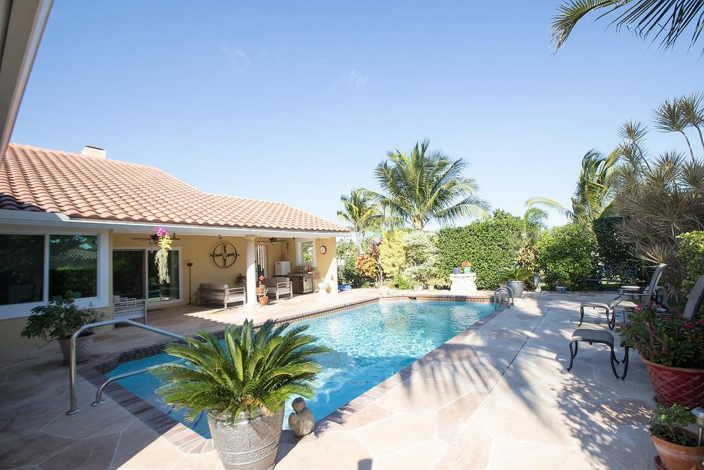 Gorgeous single family custom home on 1/2 acre , ready to move in! 4/2, pool( was refinished) w/LED lights. Split master bedroom. Cabana doors in bedrooms, walk in closets in mst. 2 remodeled bathrooms with granite. Tile and wood floors. Crown molding, cherry kitchen cabinets, and granite countertops, deep sink, stainless steel appliances. Double see through fireplace in fam/liv room. lots of storage, full attic. New fenced in yard. New impact windows, large covered patio w/ tranquil canal view, 2 car garage, new water heater, new roof, gutters and paver driveway. Perfect location, and great schools!
