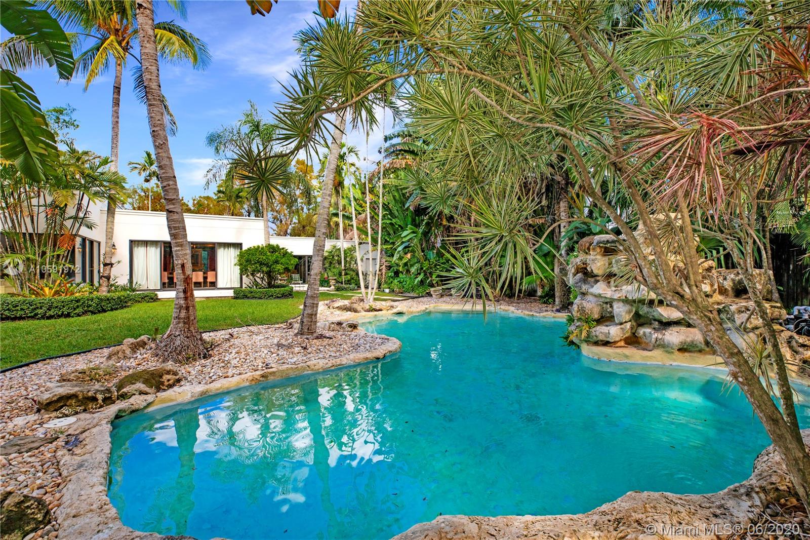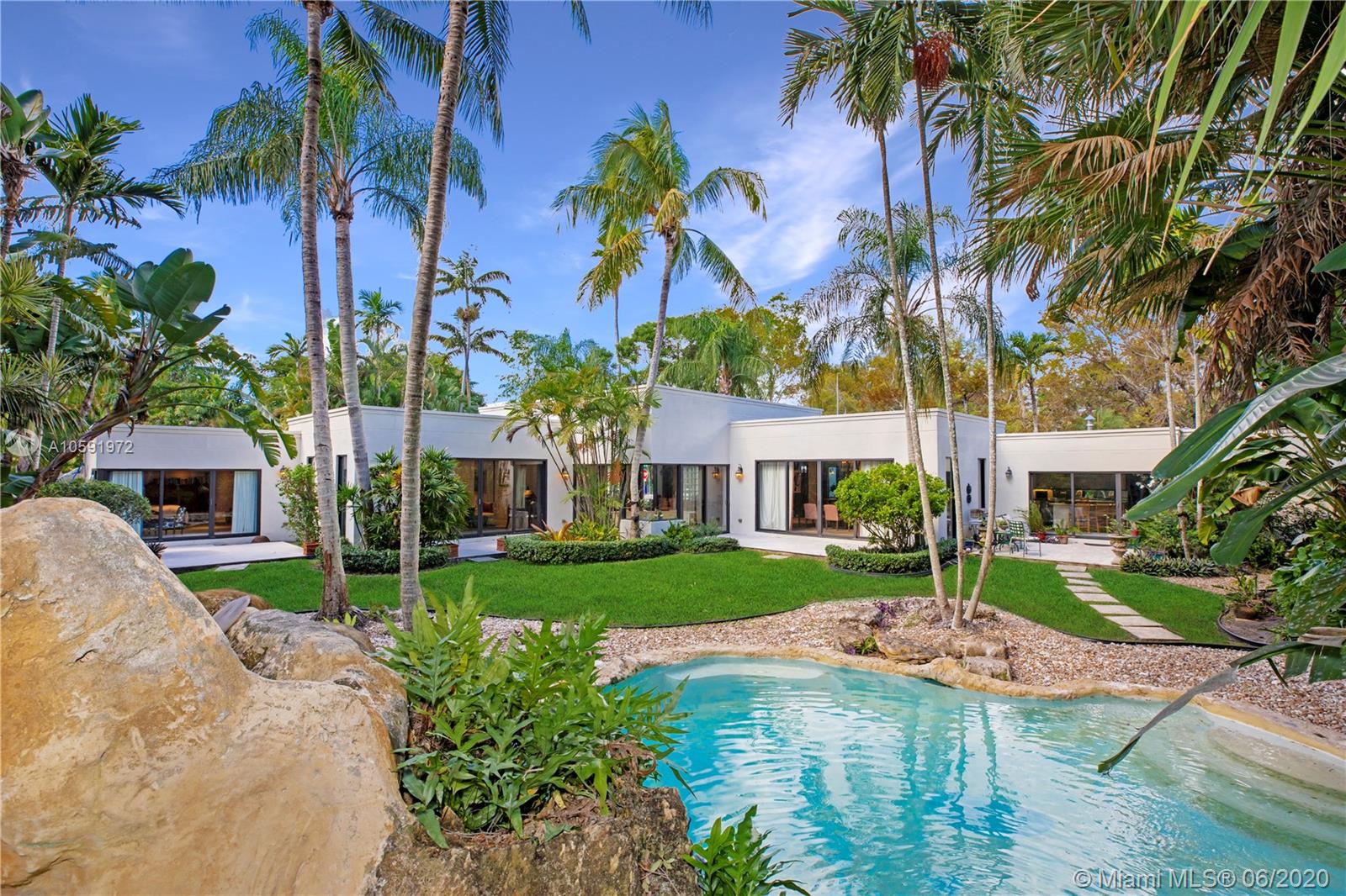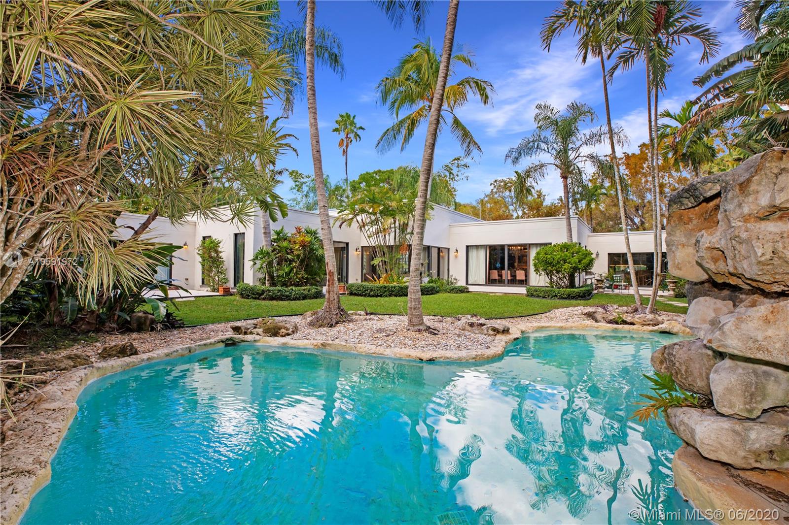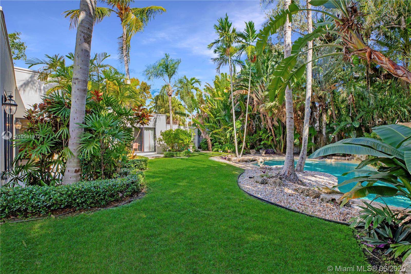 Paradise Found! 1-story home on huge 16,497 sqft lot! HIGH ceilings and spacious layout in sought after South Grove. Enter the grand living room and enjoy picturesque views of the the lush tropical yard. Relax by a tranquil pool, waterfall and spa. Private master suite allows for sitting area, 2 walk-in closets, dual sinks, steam shower, massive deep soaking tub. Split-floor plan offers 3 more bedrooms with en-suite bathrooms. Office & half bath could easily become 5th en-suite bedroom. Entertain at the built-in wet bar and in spacious and elegant dining room. Cheery kitchen w/ easy access to laundry, utility room, garage and patio. Central neighborhood, sophisticated address, one-of-a-kind gem. View the virtual tour here: https://bit.ly/3c0yo7m