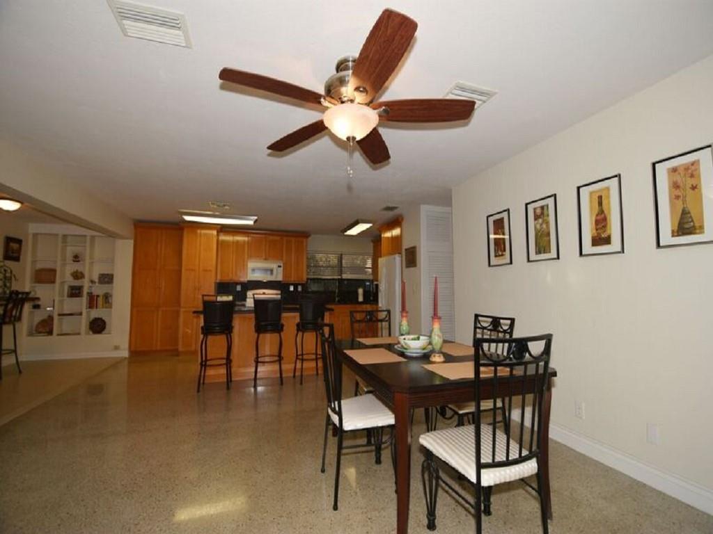 Large Den/Children Play area/Exercise Room- Open Kitchen- to dining and living room-new Maple Cabinets with Island-bright Terrazzo flooring. Back deck-walk to Beach less than 1 mile It's clean & neat. Full 3/2.