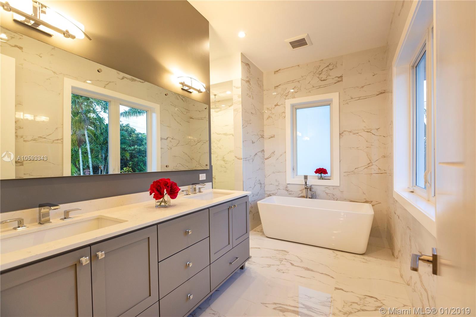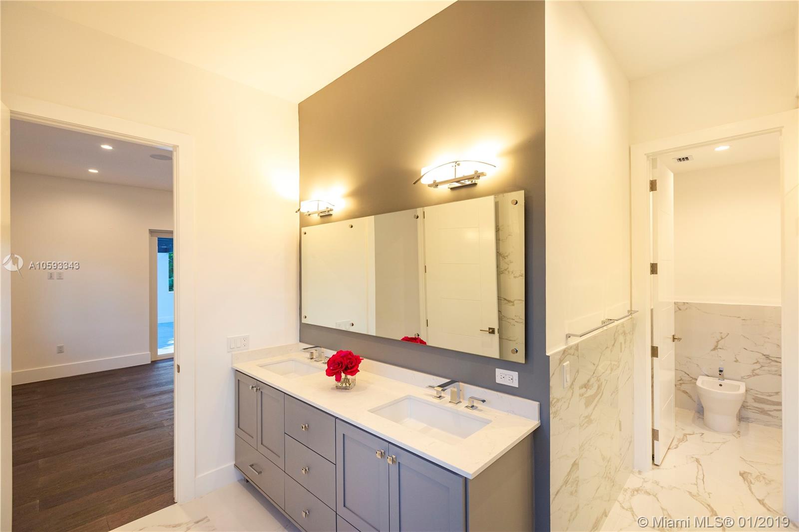 Elegant, beautiful and spacious, brand new construction in Coral Gables. 4-Bedroom, 4.5-Bath open plan home. Transitional Modern design with everything you would expect in a well built, beautifully appointed home. Impact windows and doors, one-car garage, indoor laundry room, spacious entertainment area and pool. Ample wood finished closets, Amazing Master Bathroom and suite with a large balcony. Porcelain flooring floors, LED lighting and much more. Located near UM, South Miami, and everything the Gables has to offer.