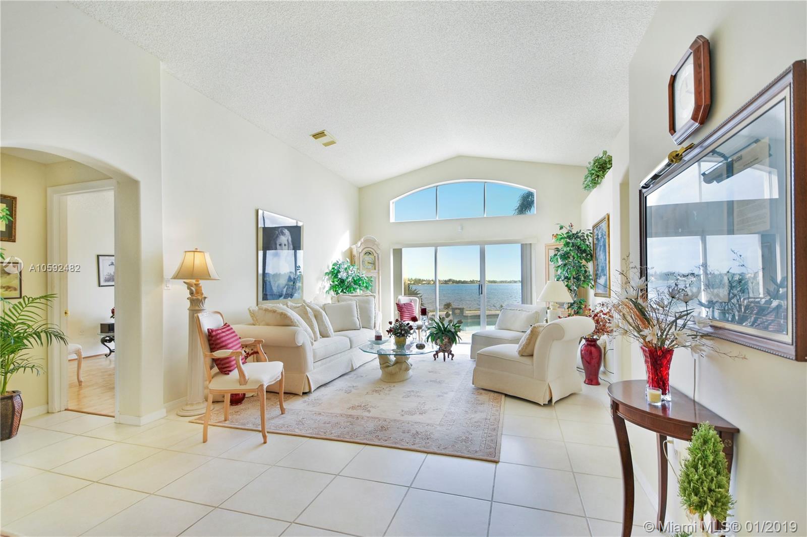 Gorgeous one-story large lake front/pool home with 3 bedrooms & 2 full bathrooms, split floor plan, separate dining & living room. Accordion Shutters. Lush landscaping. Keystone Lake is a gated community, 24 hrs security. Conveniently located in the west of Pembroke Pines area just minutes away from "A" rated schools, restaurants, shopping, theaters, parks & access to I75, HWY/27. Home is located near well care vacant lot. Locate in the most desirable view of the lake, sunrise & sunset are impressive view. must see