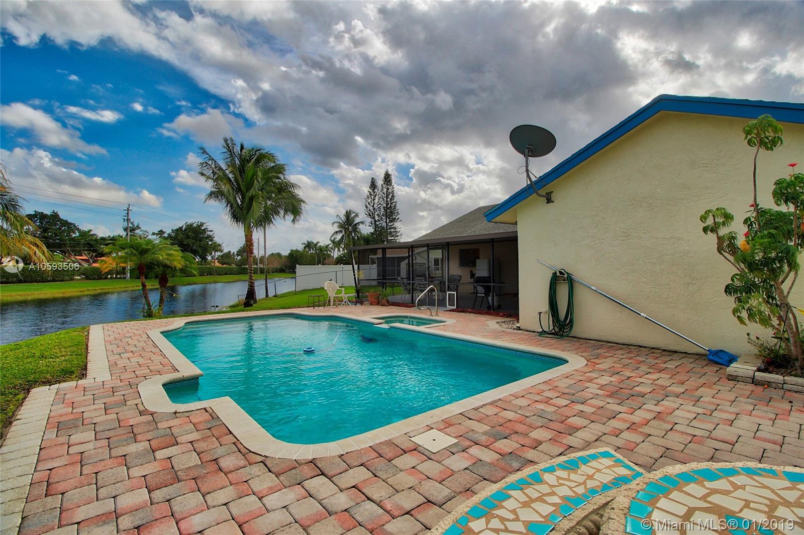 You'll fall in love with this beautifully charming lake front pool home on over a 10,000 square foot lot that is close to Davie's Most Sought After Schools. This 3 bedroom 2 bath home with a huge over sized screened-in patio is great for entertaining. The 2nd bath has a cabana bath entry to the patio. The pool includes a built-in spa for your relaxation. This spacious open floor plan boasts with new wood like laminate floors, modern stainless steel appliances and a laundry room. This extra large lot home is looking for its new owners...Don't miss out on this chance as it can be yours!