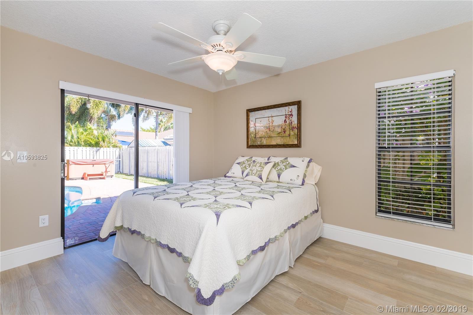 4/2 with popular open floor plan. Entire house has new wood plank porcelain tiles in a washed wood...so beautiful. Living area has BRAND NEW window treatments. Master bath has been updated. Split bedroom & interior laundry room. Stunning curb appeal with paved driveway & quaint front porch. Covered & screened back patio. Sparkling pool with free standing hot tub. Accordion shutters & panels for complete hurricane protection. Location, Location, Location! Walk to Shenandoah Park. Close to highways & great Davie schools.