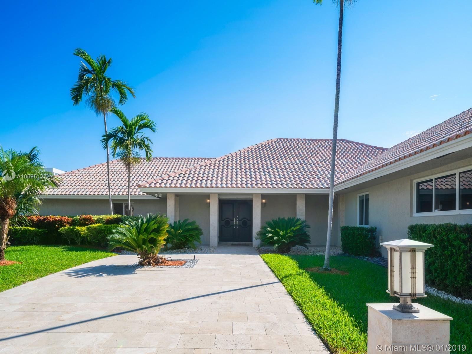 300' Waterfront, 60' Private Dock, Wide Turning Basin, SE-facing corner home. Live in one of South Florida's most desirable gated waterfront communities. This spectacular one-story point lot home boasts the most breathtaking water views of the Intracoastal Waterway. The home features a huge master suite, 3 additional BDRM's, 3 BA, spacious kitchen, living & dining rooms w/ direct Intracoastal water views. The sparkling oversized pool & lanai look directly on the Intracoastal. Directly across Golden Beach.