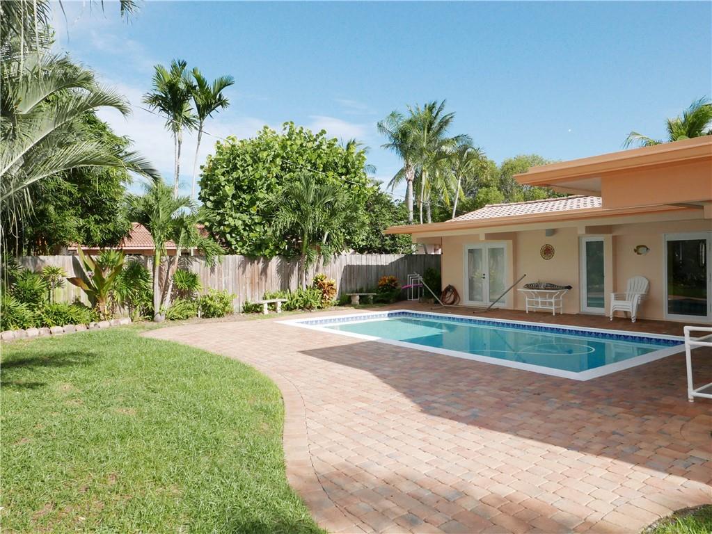 This immaculate home is only about 3 miles away from one of our most expansive & beautiful beaches! You'll appreciate the recently painted exterior, sealed driveway & patio pavers, garage cabinetry from the Closet Factory, AC replaced 2014, newer AC duct work, gutters around the home, outdoor speakers by the pool & so much more! From the moment you walk in you will love the layout; the split bedrooms, the generous room sizes, the beautiful custom built dry bar, & the updated hallway bath. The master bedroom is enormous & the other two are well apportioned also. The common living area is bright with natural light overlooking the swimming pool & gardens. The kitchen, updated a few years ago is well planned & very spacious. There is plenty of storage in the home as well. You'll love it here!