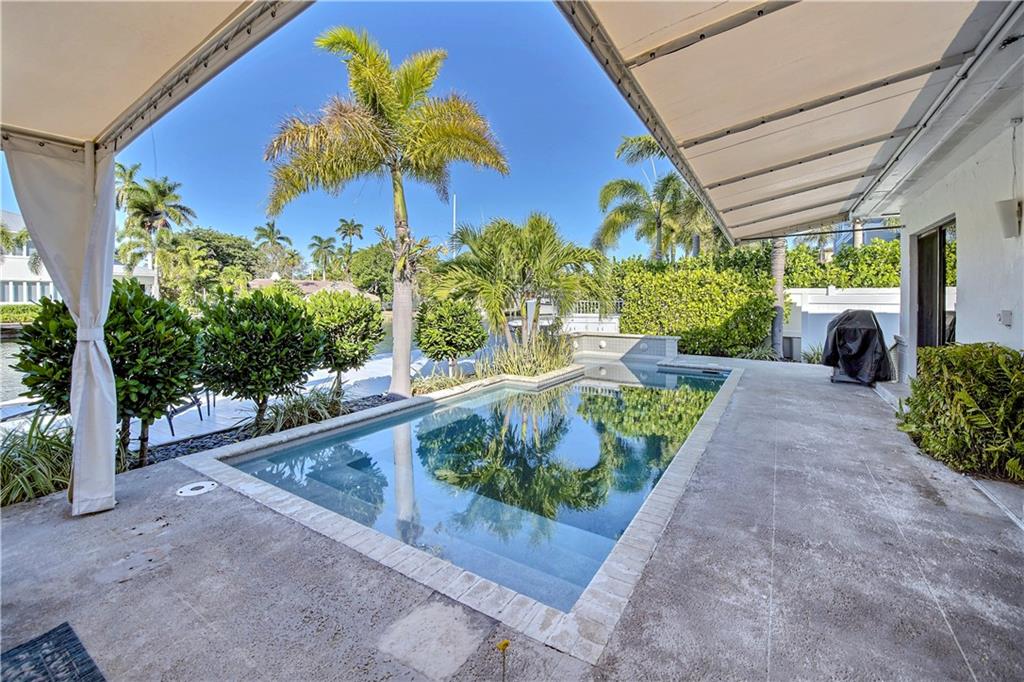 A contemporary home, with a 75' dock, on a super wide canal, in desirable Las Olas area. Formal Living Room features high ceilings with dark marble flooring. Separate family room with open kitchen overlooks a covered patio and alluring pool. 3 bdrms/3 baths, office/4th bedroom w/an outdoor entrance. Newer dock w/PVC decking. Move in ready but also offers a great layout for Buyers looking to update to their personal style.