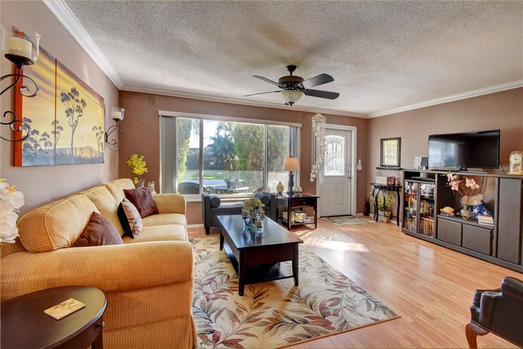 Welcome home. The pride of ownership is evident in this well kept and updated 2/2 with a 1 car garage in Leisureville. But don't let the name fool you. Leisureville is a very active community with 2 Clubhouses with heated pools, Sauna, Billiard Room, Library, and game tables. $8 golf for owners, security, shuttle bus, and more. Your new home features IMPACT WINDOWS, Laminate and Ceramic tile flooring throughout. Crown molding. New facets. New light fixtures and ceiling fans. New electric panels, Newer A/C and Newer water heater. New exterior and interior doors. Washer and Dryer included. This is a turnkey home (unfurnished), with no work needed. Move right in and enjoy the peace and serenity of your private screened in patio area. This spacious and affordable home will not last long.