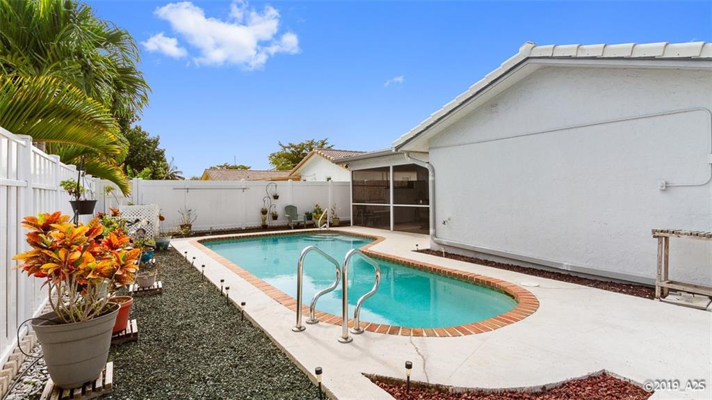 WATCH THE SLIDESHOW – Spectacular & affordable pool home in a prime Coral Springs location! Westchester is renowned for great parks, schools, playgrounds and no HOA dues! You have easy access to the Sawgrass, the Tennis Center, the Aquatic Complex, the Florida Panther’s Ice Den, the Nature Center, Coral Springs Regional Park, beautiful lakes and even Dr. Paul’s Dog Park. This pool home is perfect for entertaining & family fun with a screened patio and fully fenced yard. Inside you have an open floor plan with vaulted ceilings, ceramic & laminate floors (no carpeting). The kitchen features Maplewood cabinetry and SS appliances. The roof was replaced in 2006 and all the openings were upgraded with hurricane rated windows & doors. Even the Murphy bed in the 3rd bedroom is included!