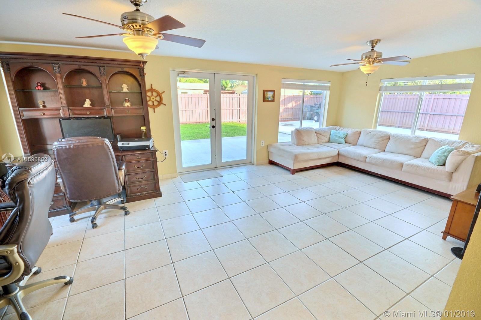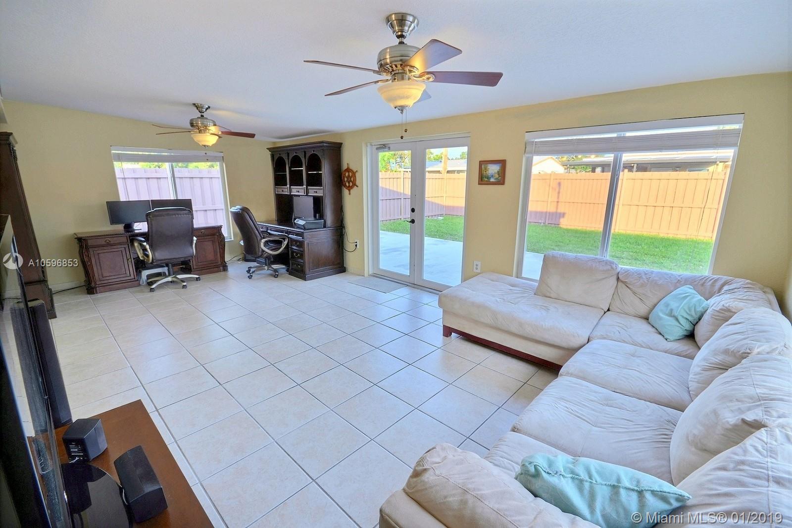 AWESOME ONE STORY HOME IN PINES IN IMMACULATELY WELL KEPT AND FEATURES TITLE FLOORING THROUGHOUT, 3 BEDS, SUPER LARGE FAMILY ROOM, HURRICANE IMPACT WINDOWS, AMAZING CIRCULAR DRIVEWAY. BACKYARD IS VERY PRIVATE WITH FENCE AND LARGE PATIO AREAS. CENTRALLY LOCATED NEAR SHOPPING, DINING AND SCHOOLS. NO HOA!