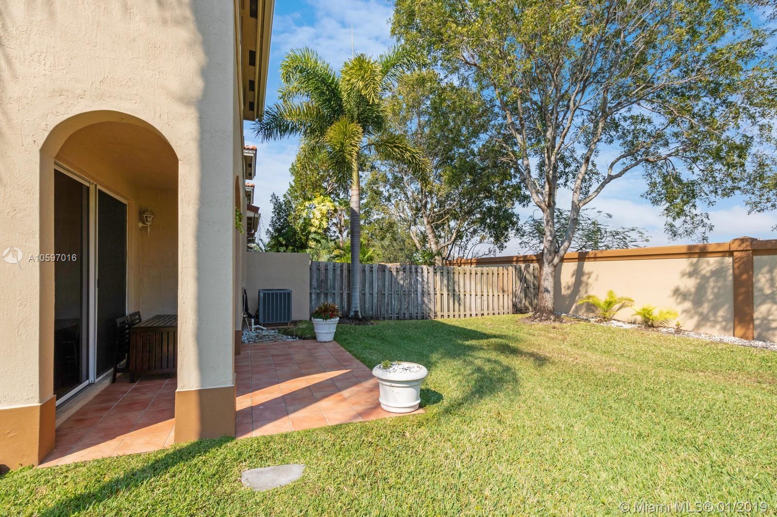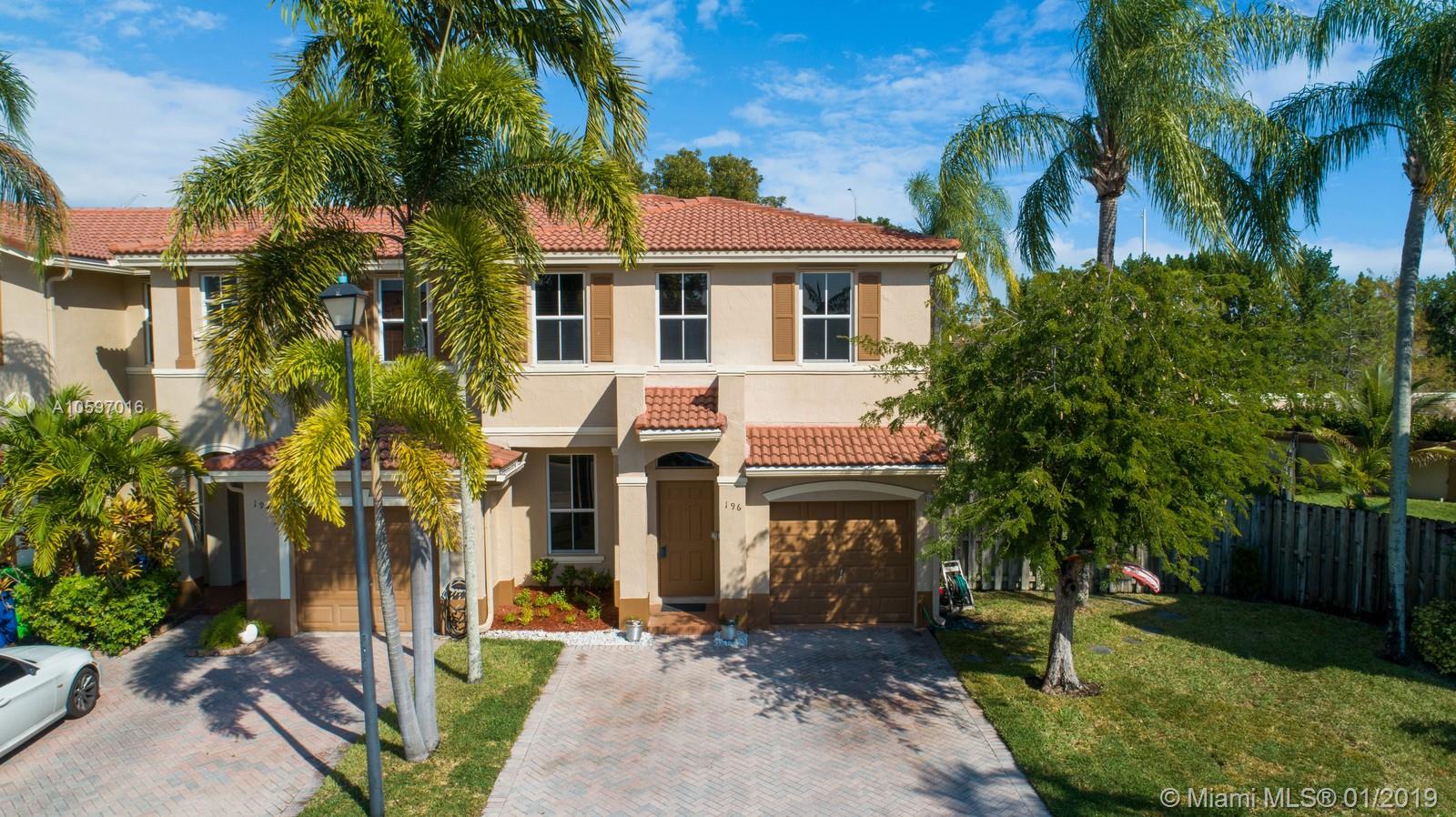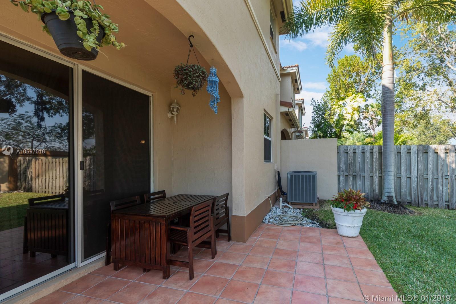 Spacious immaculate corner unit, 4 bed/3bath townhouse with one-car garage in the desirable community of Riverwalk (bordering Weston/Sunrise) in Sunrise. Unit features oversized fenced yard (rare in a townhouse) ideal for family fun and entertaining, One bedroom and full bath on ground level, spacious bedrooms, completely tiled on first floor, high-efficiency newer A/C, newer water heater, newer washer and dryer. Conveniently located near major highways and shopping galore. A+ schools! Will not last!