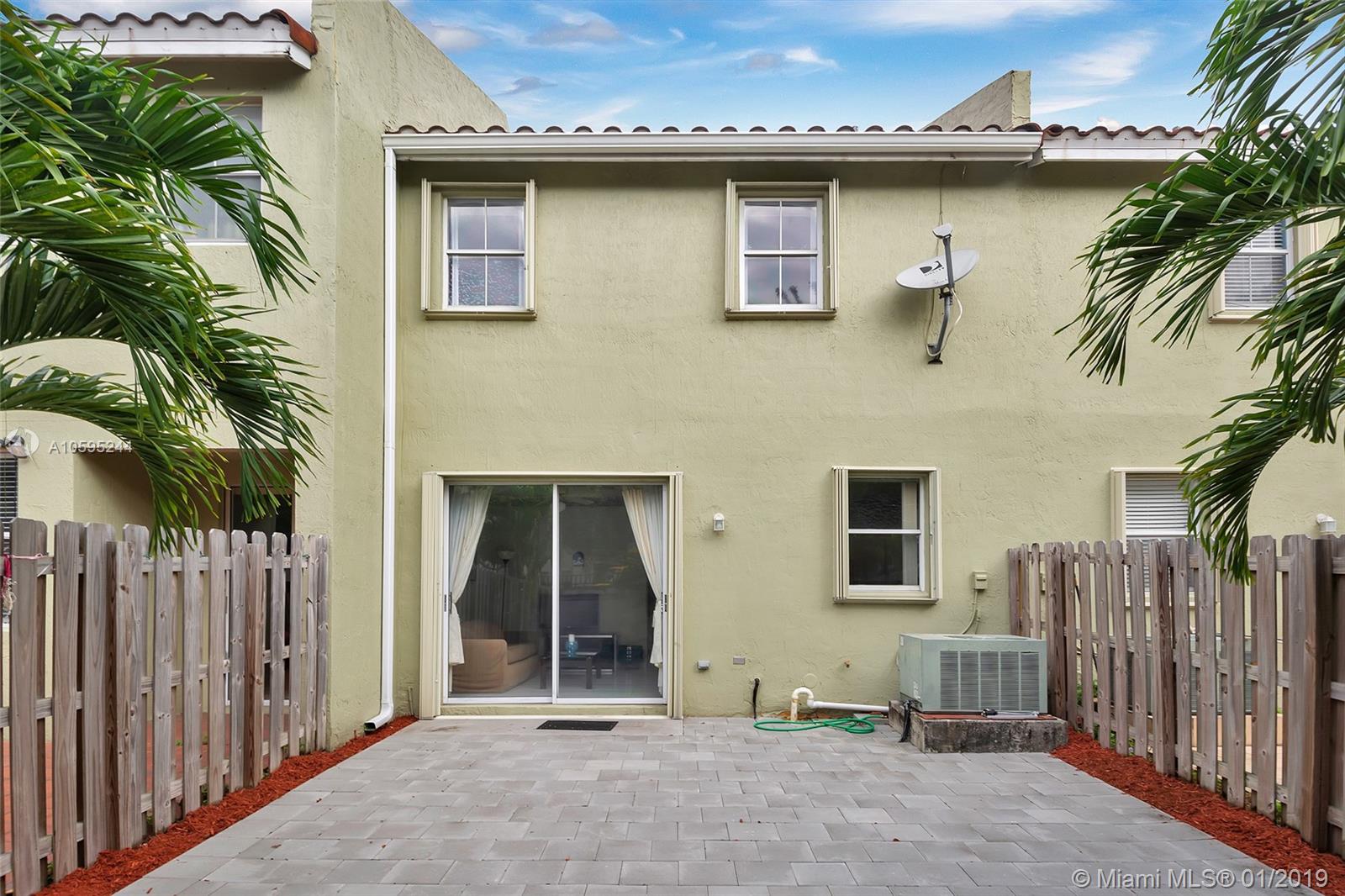 Location is everything at this well maintained 3 bedroom 2.5 bath townhome in the gated community of Sandcastles at Doral. Townhome is spacious with a large master bedroom, lots of natural light, one car garage, two driveway parking spaces right out front, large outdoor patio and accordion shutters throughout. This community has low HOA fees and is located within walking distance to grocery stores, restaurants, lounges, Trails & Tails dog park, Turnpike, 826/836, International and Dolphin Mall.