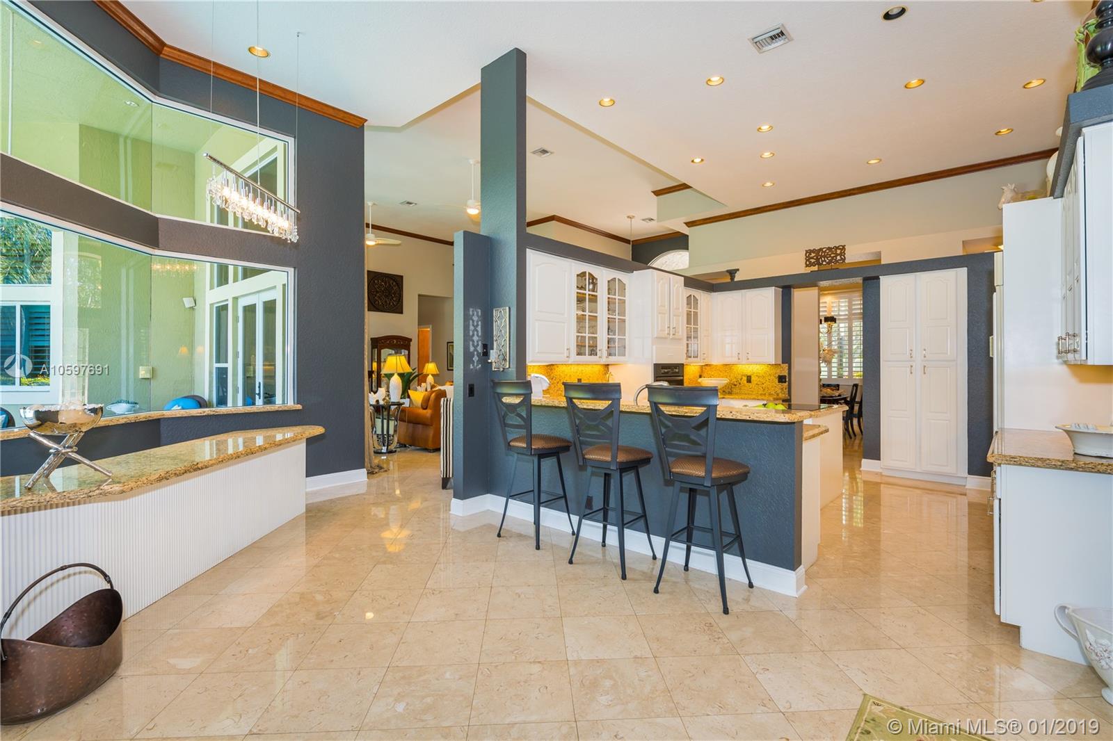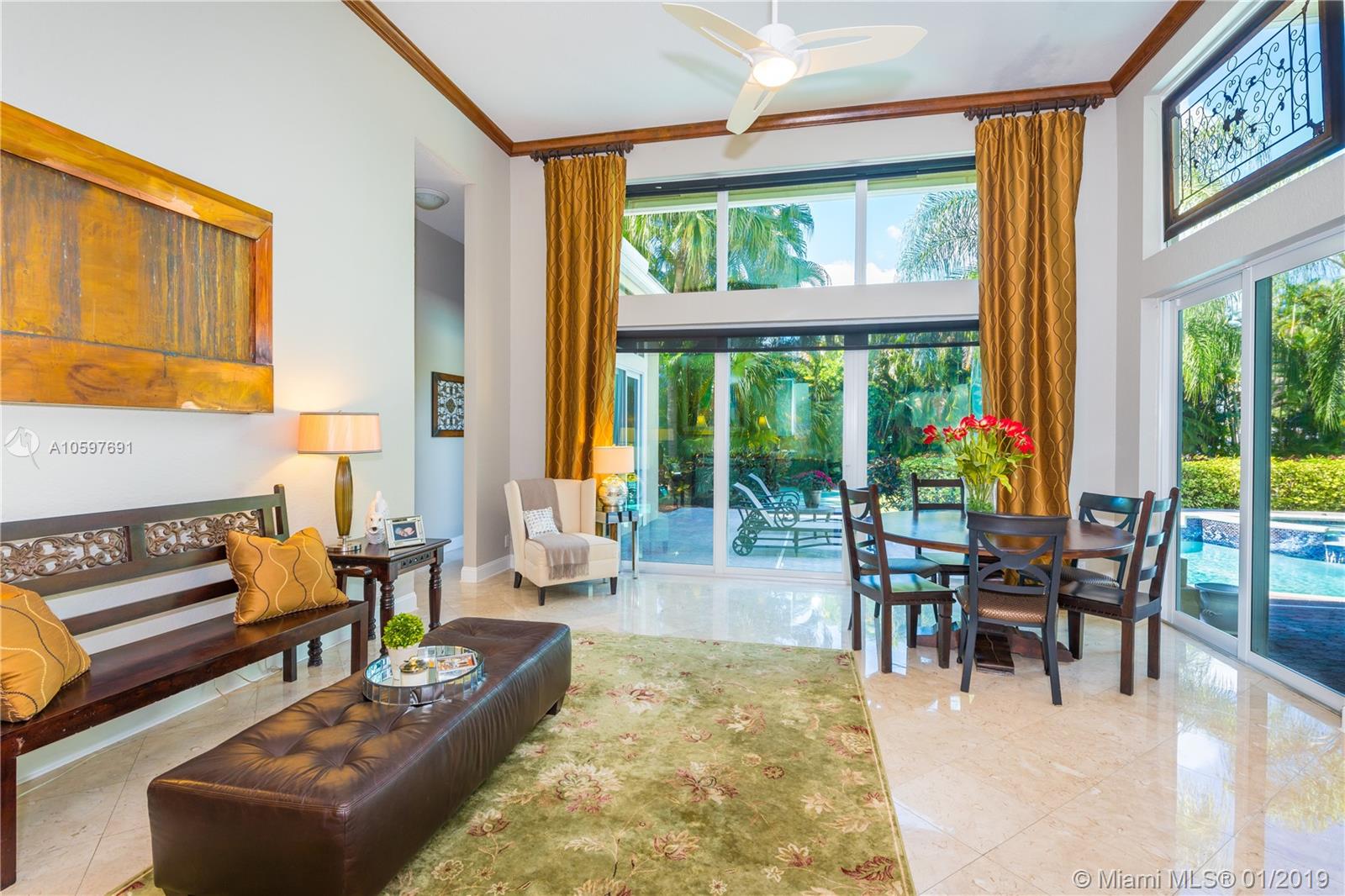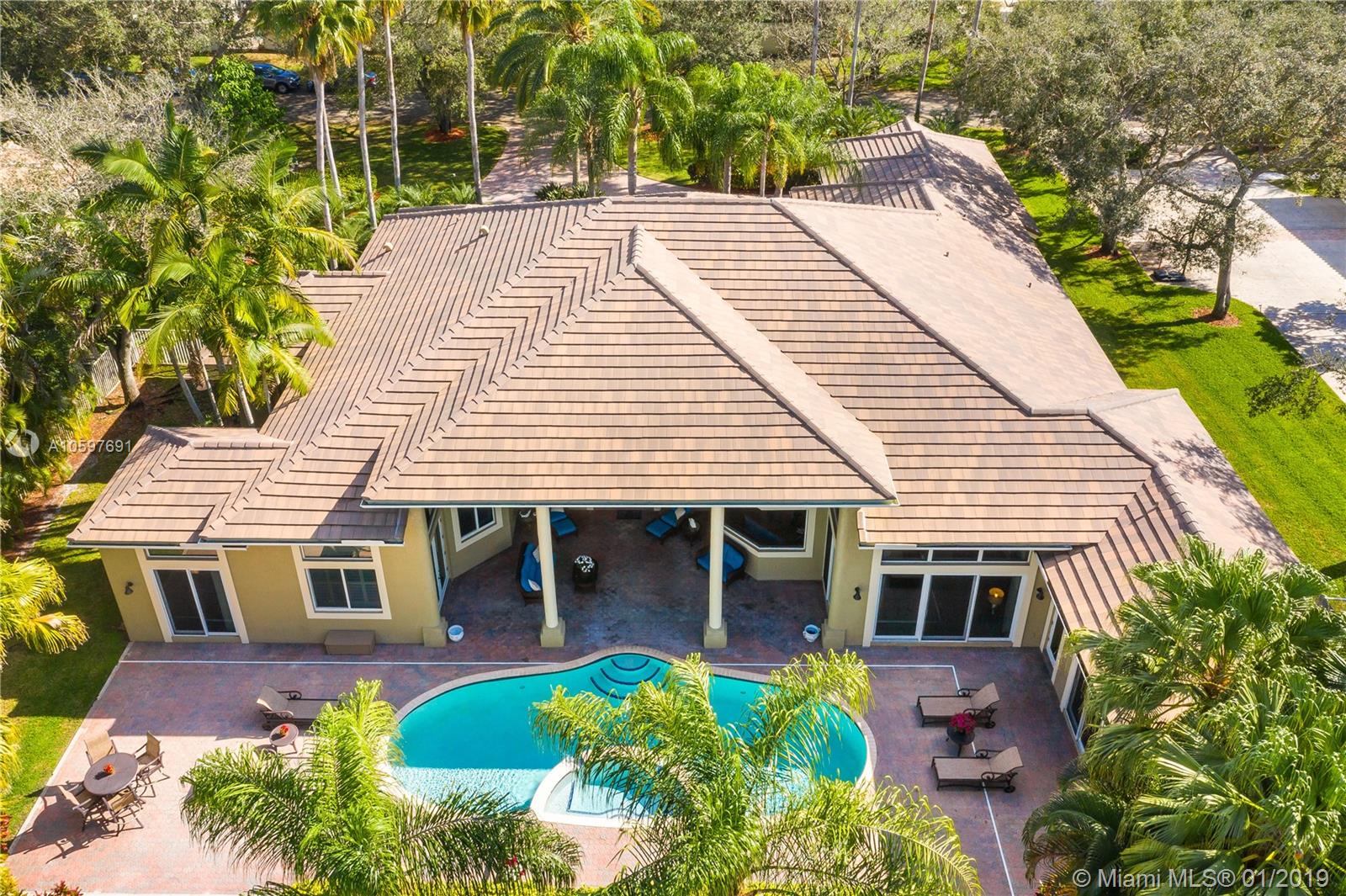 (Agents/Appraisers please call agent for details on sale) 6 large bedrooms plus den. Flowing floor plan loaded with close to $300,000 in upgrades and updates. $75,000 roof is less than 5 years old. $55,000 of impact windows and doors. Live in luxury with the hardwood and marble floors, high-end lighting, gorgeous window treatments and more. Impeccably maintained by original owner, this is a turn-key home. Huge master retreat complete with sitting area, bonus room (currently used as gym) 2 large master closets and updated bath. This beauty is light and bright with abundant windows and soaring ceilings. Large covered patio overlooks perfectly landscaped builder's acre with sparkling pool/spa and lighted basketball court. Card gated community with EXCELLENT Cooper City schools.