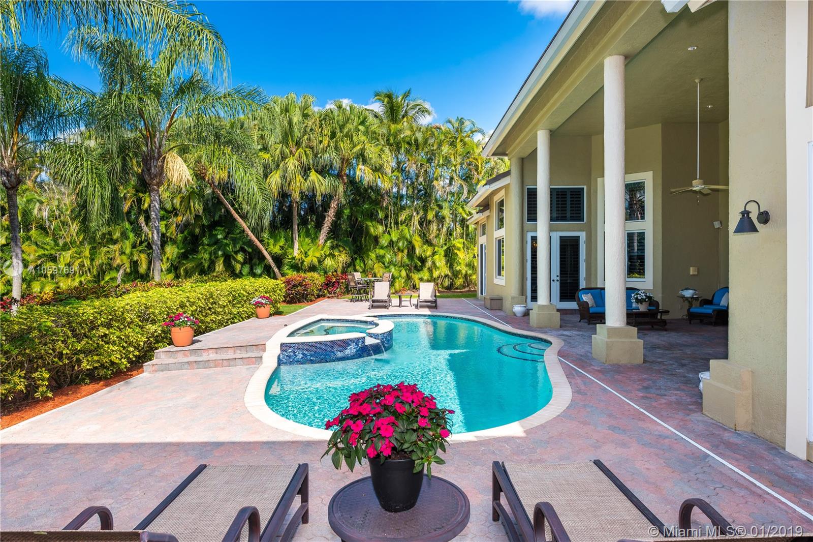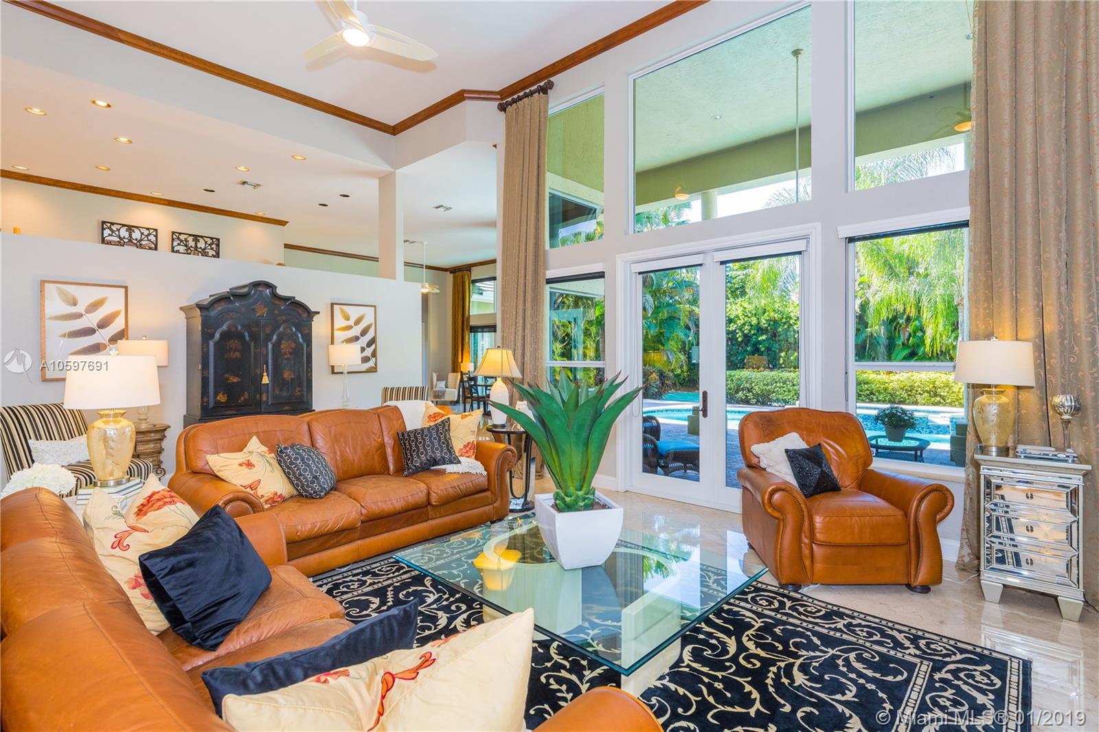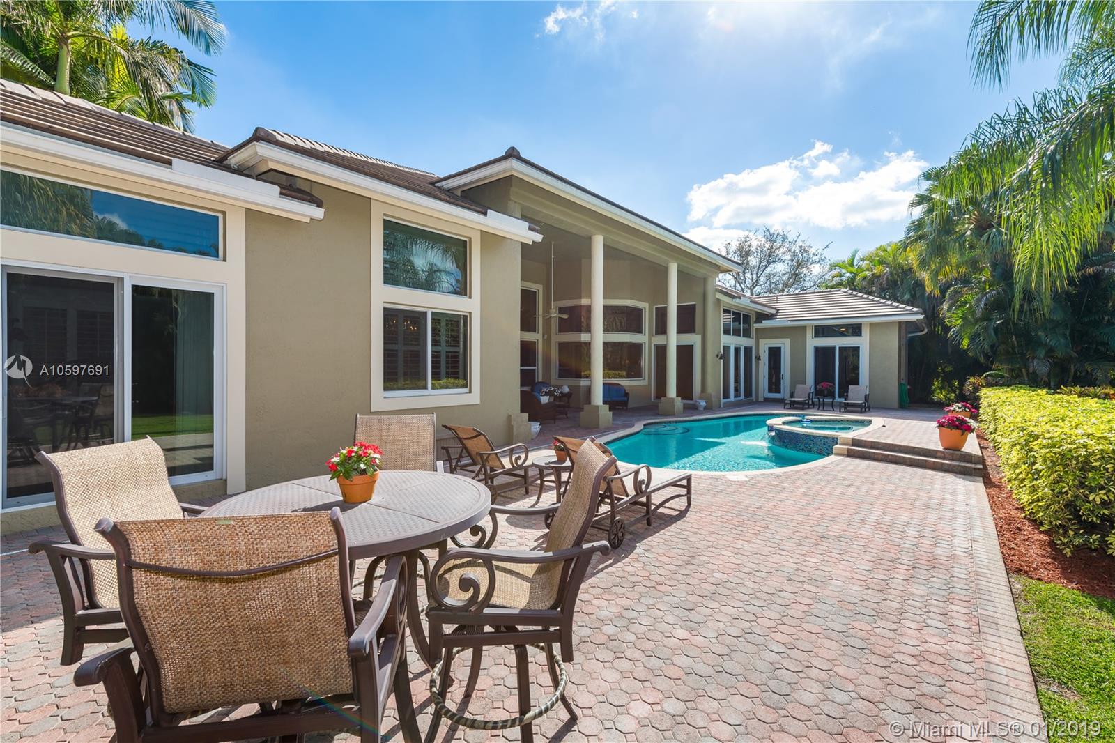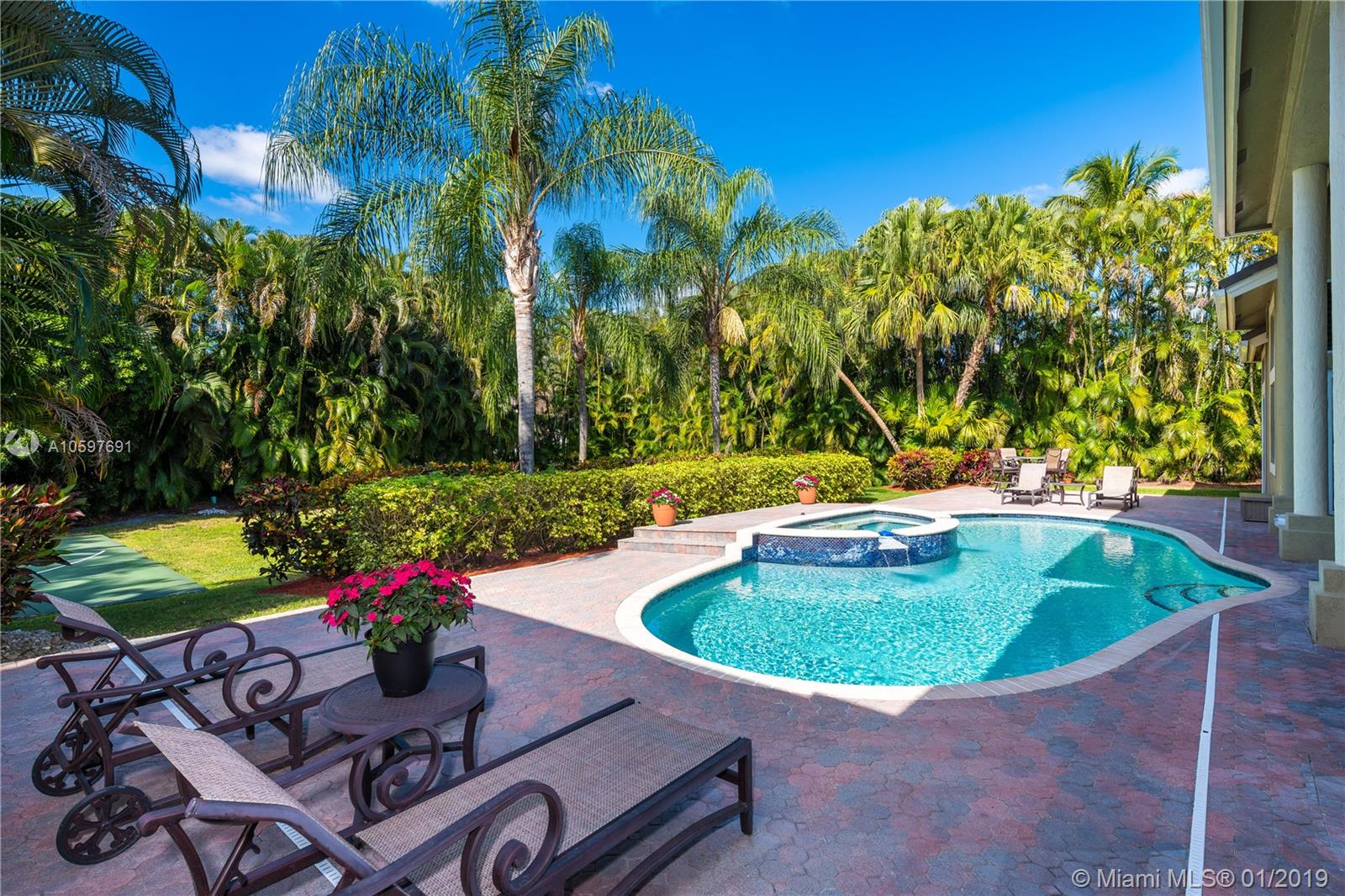 (Agents/Appraisers please call agent for details on sale) 6 large bedrooms plus den. Flowing floor plan loaded with close to $300,000 in upgrades and updates. $75,000 roof is less than 5 years old. $55,000 of impact windows and doors. Live in luxury with the hardwood and marble floors, high-end lighting, gorgeous window treatments and more. Impeccably maintained by original owner, this is a turn-key home. Huge master retreat complete with sitting area, bonus room (currently used as gym) 2 large master closets and updated bath. This beauty is light and bright with abundant windows and soaring ceilings. Large covered patio overlooks perfectly landscaped builder's acre with sparkling pool/spa and lighted basketball court. Card gated community with EXCELLENT Cooper City schools.