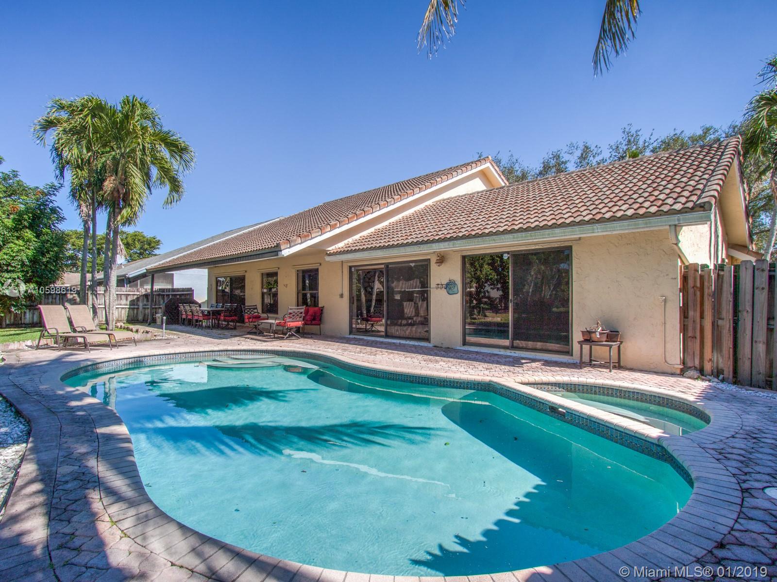 Beautiful 4/3 pool home in highly sought after Cooper City location with top rated schools! Open floor plan property features high ceilings, marble floors in living area, remodeled kitchen (granite, stainless steel appliances, wood cabinets), updated master bath, guest bedroom downstairs, office overlooking pool, hurricane impact garage door Plus shutters for all windows and LED lighting and so much more. Gorgeous pool area with tropical trees, brick pavers, Jacuzzi, etc. Make this your home today!