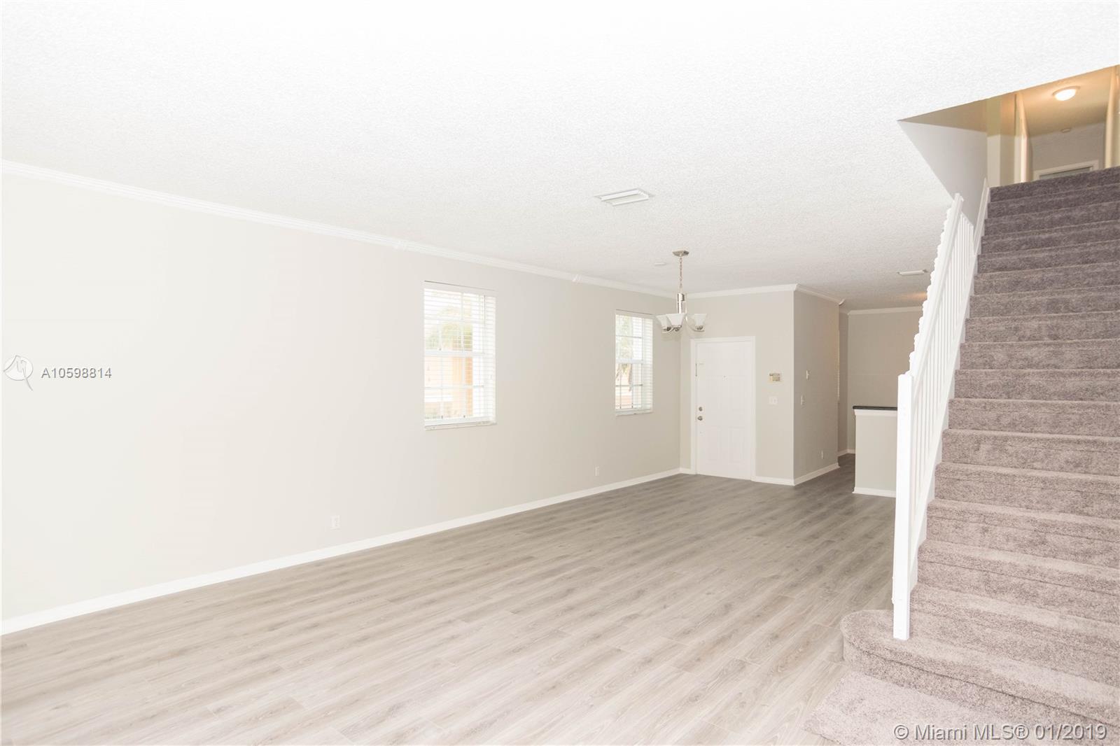 Ready to move San Simeon townhome. Brand new laminated on the first floor and brand new modern carpet on the second floor. Beautiful kitchen with granite counter top and stainless steel appliances. The unit has been freshly painted. Great community near to the most desirable schools in Broward County. You will love it!