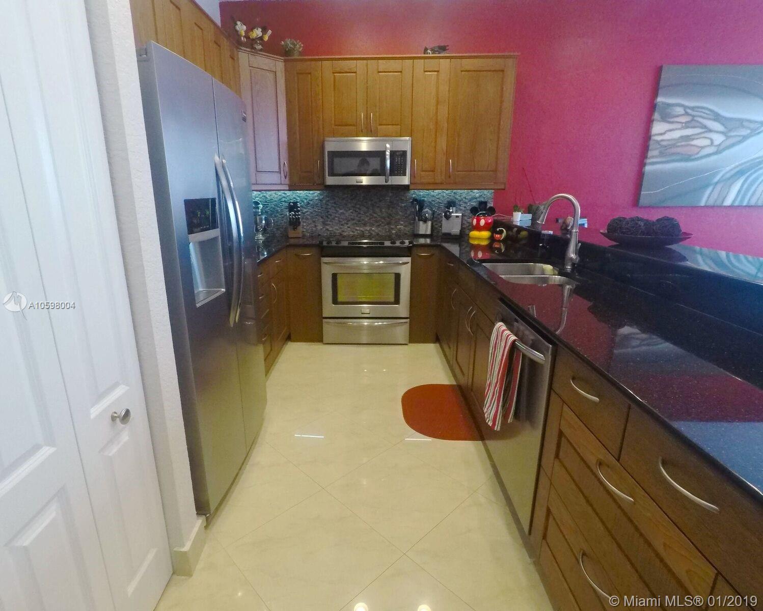 Updated and move-in ready! 2BD-2.5Bth water view townhome in Cobblestone (Pembroke Pines). This home has new kitchen cabinets, backsplash, granite counter top, stainless steel appliances. New washer and dryer. Freshly painted outside. Wood flooring in entire second story, and ceramic tile in entire first story. Master bedroom features a spacious walk-in closet and balcony overlooking the lake. Master bathroom features a new frameless shower door, new tile and shower, new cabinets and granite countertop. Covered front porch overlooking the lake, patio and 2-car paved driveway. Gated community, roving security, close to malls and I-75. HOA fees INCLUDE house alarm system, Comcast cable, HBO channel lineup, DVR, Modem/Router, and high speed internet.