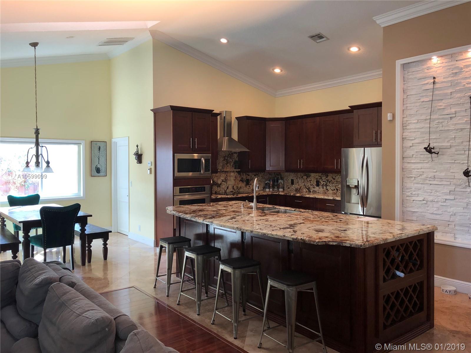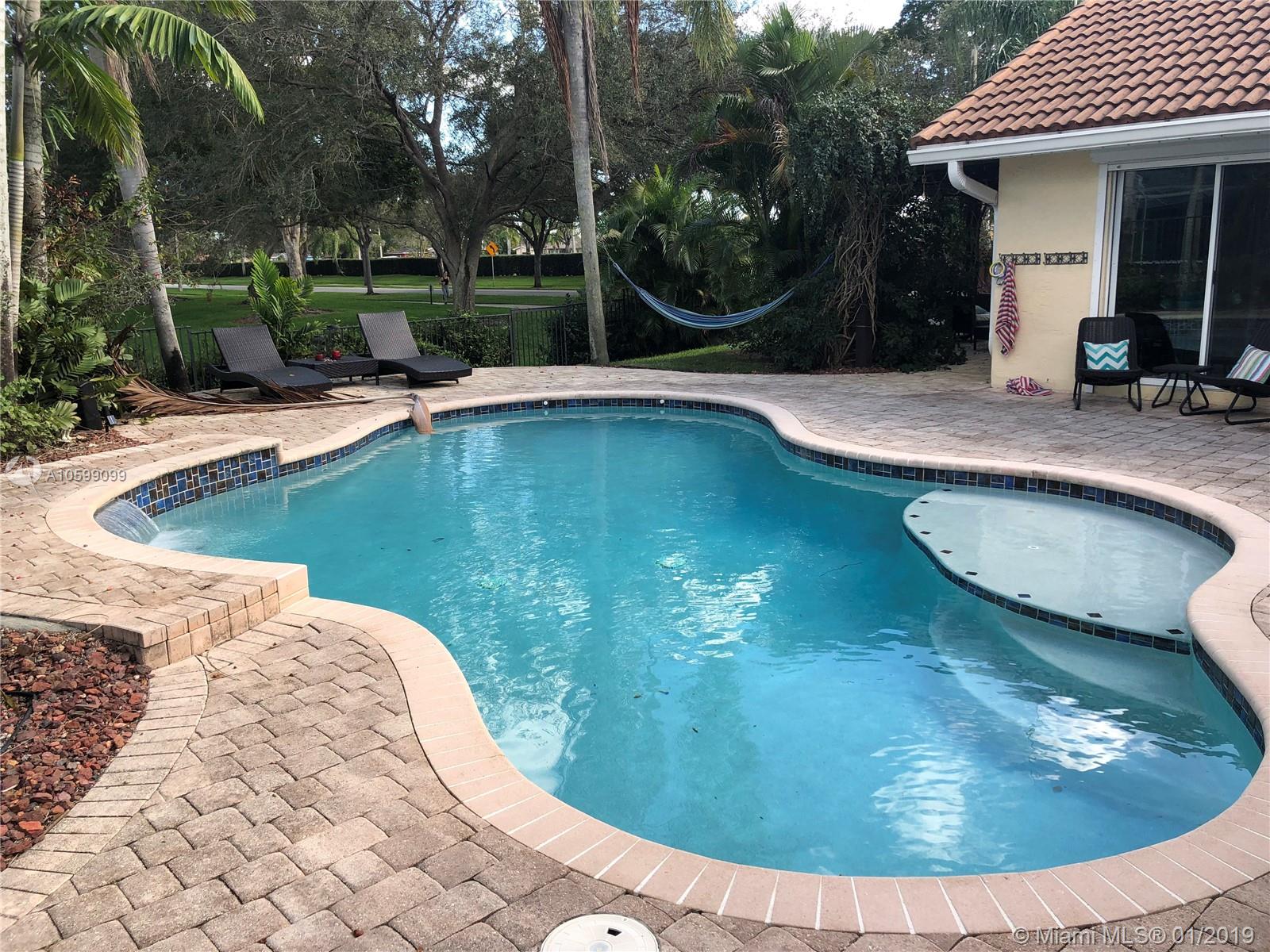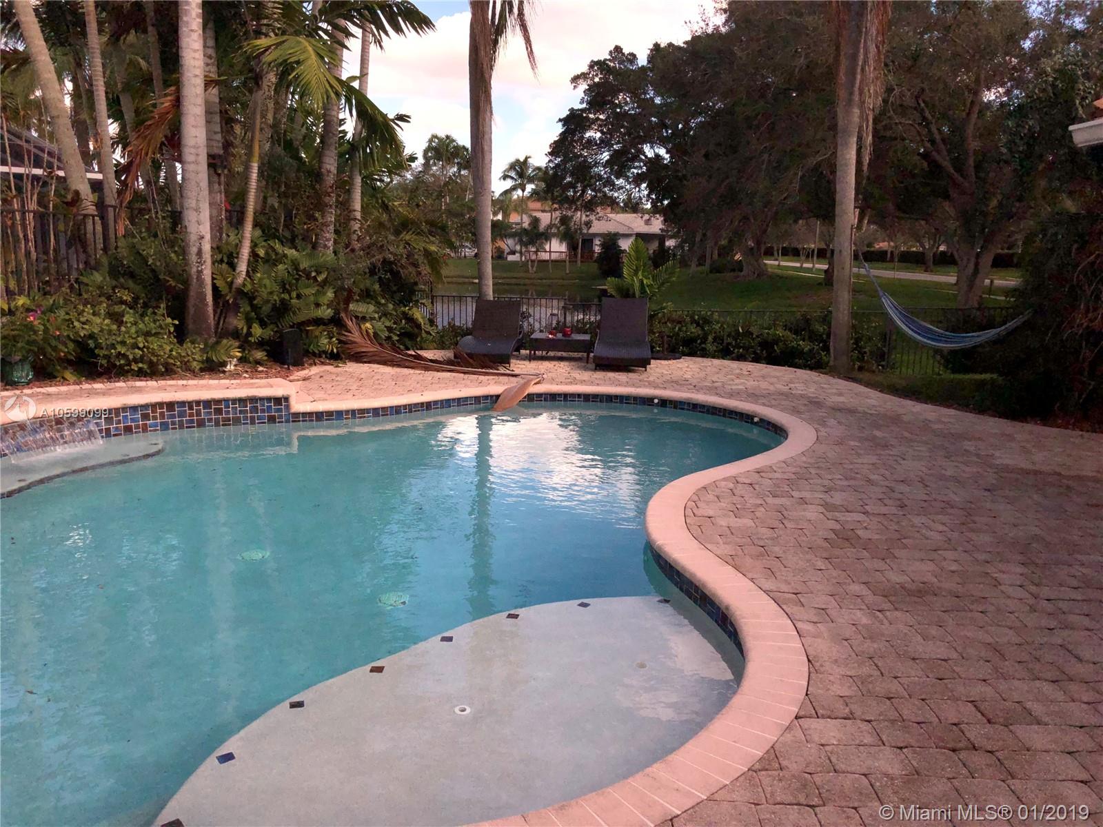 Absolutely breathtaking lakefront home on oversized corner lot in desirable Rock Creek! This home shows like a model features gorgeous gourmet kitchen with oversized granite island & stainless appliances, 5 STAR hotel master bathroom, his & her customized walk-in closets, open & airy volume ceilings, crown molding, impact glass, newer roof, recently painted inside & out, large laundry room with utility sink. Step outside & enjoy your backyard oasis with large enclosed patio, resort-style saltwater pool & pergola. What kid won't love the custom-built play-set & zip-line. Pebble Point is one of the most sought-after subdivisions in Rock Creek which has lovely parks, clubhouse, community pool & tennis. Close to shopping, restaurants, airports & amazing A-rated schools. A MUST SEE!