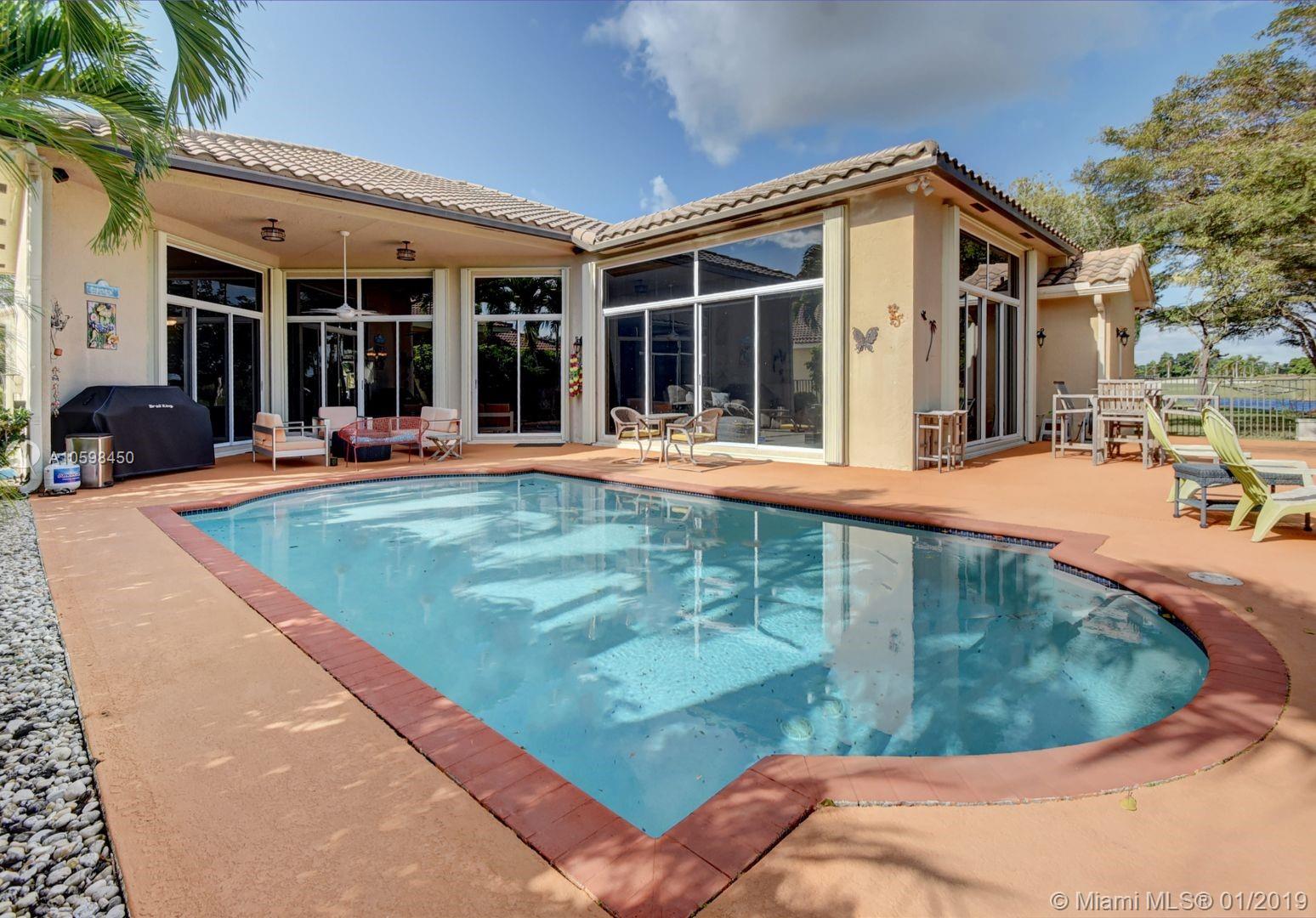 LOOKING FOR A RARE GOLF & LAKE VIEW? WALKING DISTANCE TO WESTON HILLS CC AND WESTON TOWN CENTER. TUCKED IN THE GATED COMMUNITY OF GRAND PALMS. CUSTOM BUILT REGENCY HOME WITH OVERSIZED 13,394 SQ FT LOT, COVERED PATIO/POOL, FULLY FENCED WITH RARE GOLF/WATER VIEWS. SOARING CEILINGS, SHOW LIGHT AND BRIGHT. BRAND NEW CONTEMPORARY WHITE KITCHEN SHAKER CABINETS*STUNNING GRANITE COUNTERTOPS*STAINLESS APPLIANCES*DBL OVEN*UNDER MOUNT SINK* VERY RARE GAS STOVE,DRYER, AND 2 WATER HEATERS * GREAT SQUARE FOOTAGE WITH OVER 3100 SQ FT UNDER AIR.3 SPACIOUS BEDROOMS, 3 RENOVATED BATHS. IMPECCABLY MAINTAINED WITH AMAZING SUPERSIZED FAMILY ROOM (CAN CONVERT TO MORE ROOMS)ACCORDION SHUTTERS.HURRICANE IMPACT FRONT DOOR* RENOVATED CABANA BATH*NEW GARAGE DOORS*NEWER A/C AND ROOF*REMODELED MASTER BATH