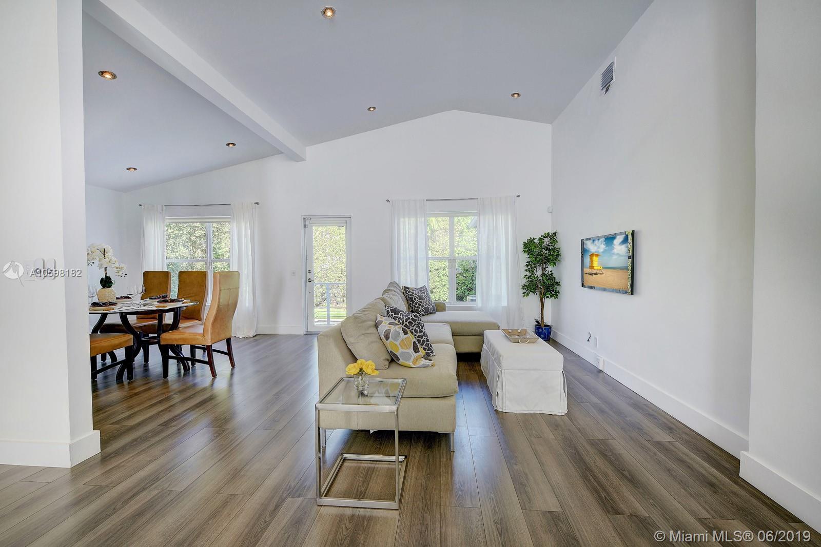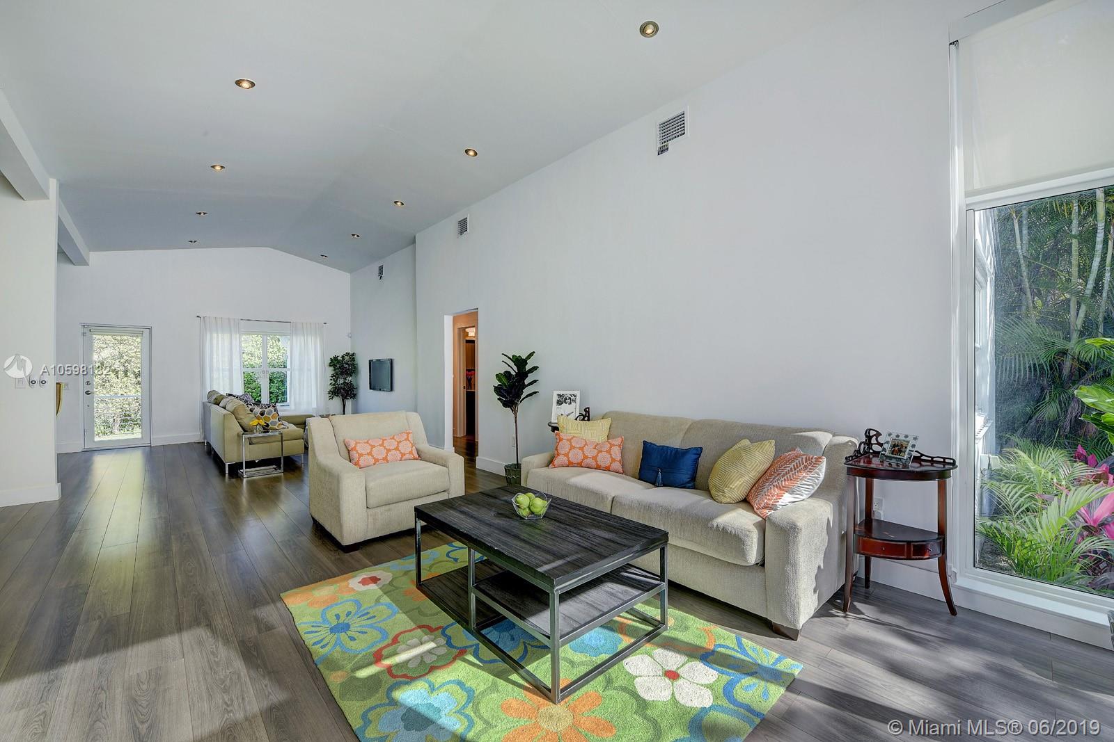 Draastically reduced for a quick sale. Low maintenance Coral Gables home with a secluded back yard salt-water pool. Completely fenced with privacy hedges and outdoor Bose wireless speaker system. Inside, dine in the eat-in kitchen or entertain more formally at the full dining table. Perfect open floor plan with multiple seating areas, all under vaulted ceilings. Want to set the mood? Close the Hunter Douglas electric blinds and dim the lights with the Phillips Hue lighting system. Walk to Publix and restaurants in Coral Gables. Worry free travel. Park your car in the one-car garage and close up the home (Impact/Shutters). Big ticket items have all been done with a new roof and AC in 2014. Very light and bright, 3 bedrooms and 2 baths, with 1,835 sq. ft.