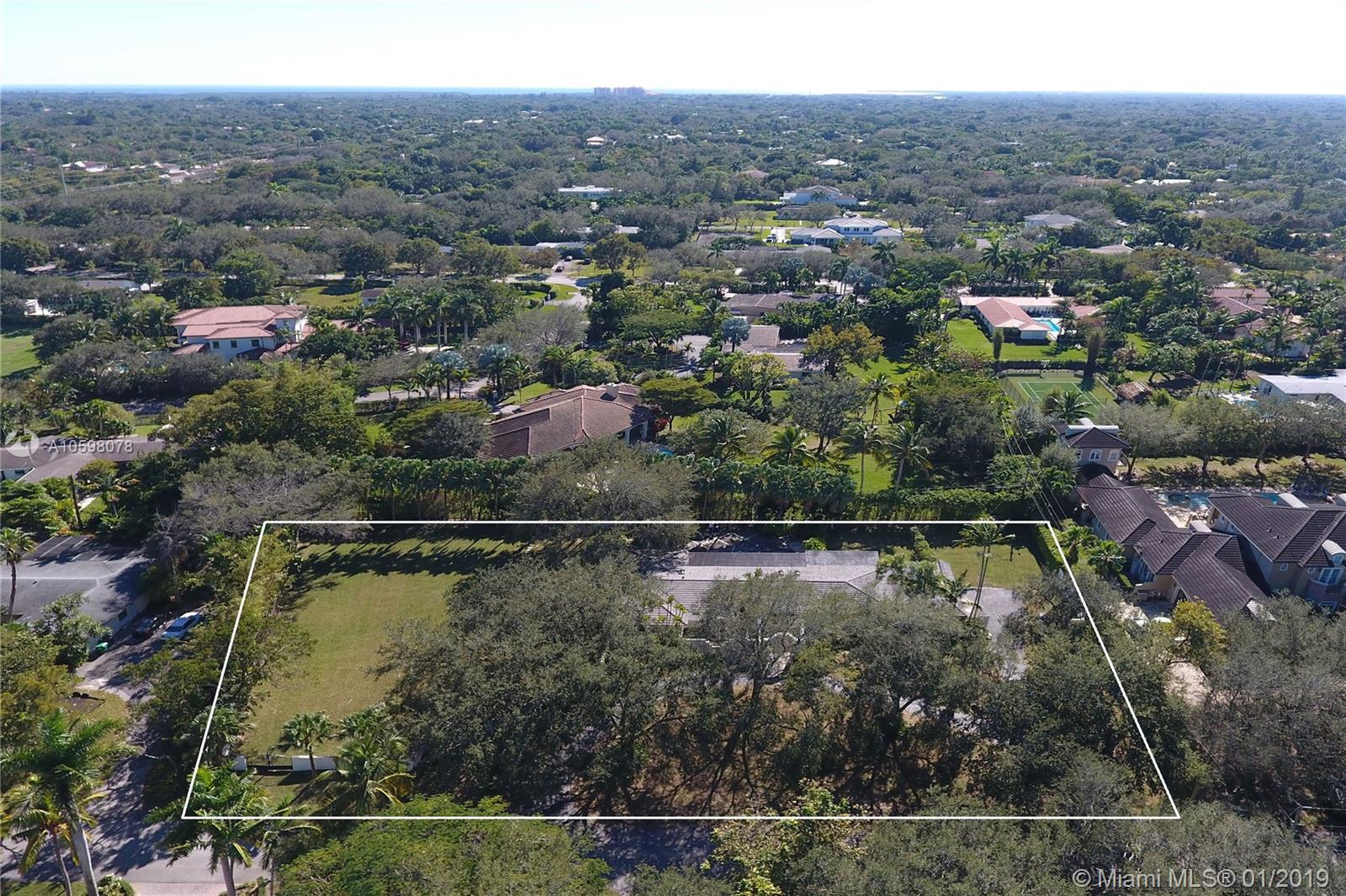 Renovate, expand or build your dream home on this gorgeous 1-ACRE lot in northeast Pinecrest! Prime location on a beautiful and peaceful tree-lined street just steps away from numerous $4M-$5M new construction homes. Recent improvements include new porcelain “wood look” floors, a newer flat tile roof, and two updated bathrooms. Renovations in kitchen and one bathroom started but not completed. 3-car garage. Pinecrest Elementary School District. Note: Paint on some interior photos digitally retouched.