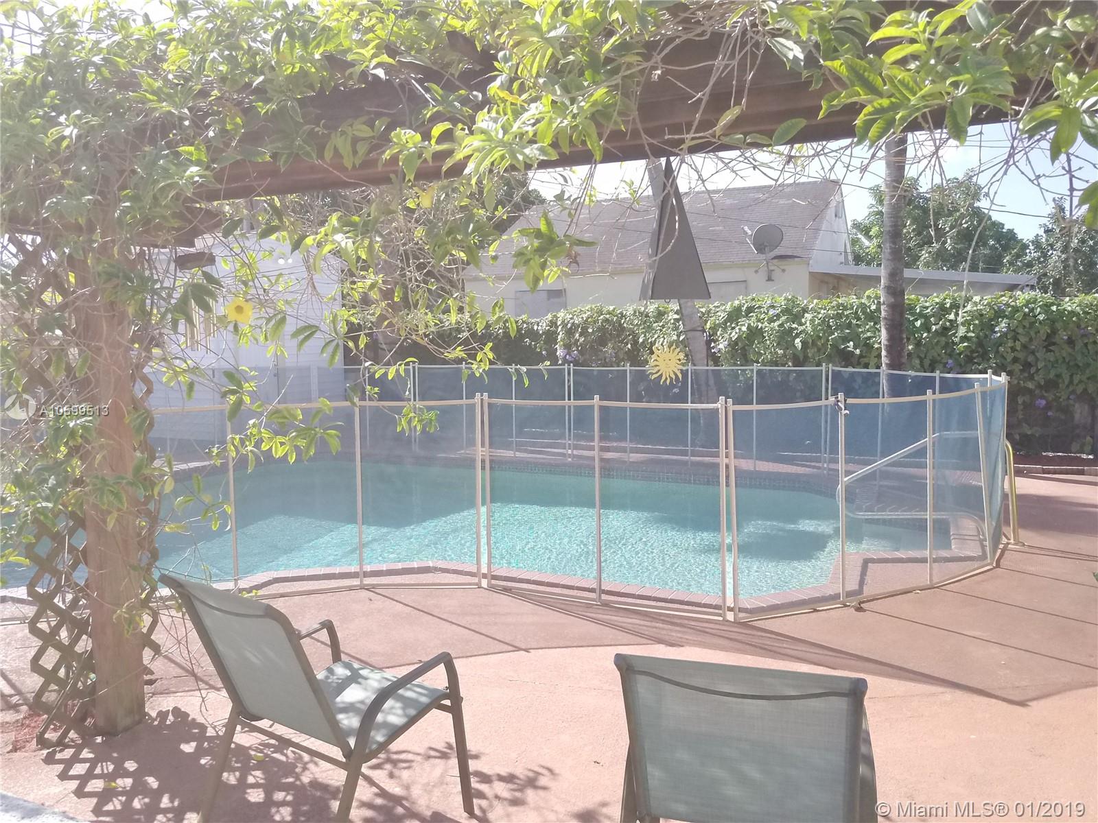 Lovely 3 bedroom 1 bath single family home on a large lot with an enchanting landscape. Key West style coconut and palm trees surround an oversized pool, with climbing vines in the back. Bonus 2 garages in the back yard, one of them being a 12 x 10 x 12 ft high garage with a shingle roof and running electricity that can easily be converted into an office or an efficiency. Brand new roof, installed less than 4 months ago, with permits and receipts. This tropical oasis takes you to an abstract relaxation far beyond the purchase price of the Hialeah neighborhood.