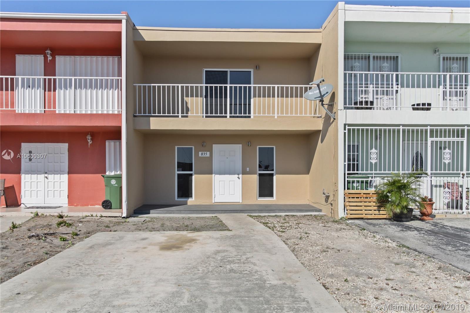 Walk into a large living space with a family room, half bathroom, dinning room, and kitchen all in one area! Complete with impact windows and doors throughout. There is ample storage underneath the stairs, new cabinets, & lots of counter space. Upstairs find 2 bedrooms and 1 bathroom. The oversize master has a private balcony overlooking to the backyard, the other bedroom has also its own private balcony with street view. Entertain friends and family in the patio area, tiled terrace, laundry room and storage closet. Proud sellers have been taking good care of the property. Perfect starter home.