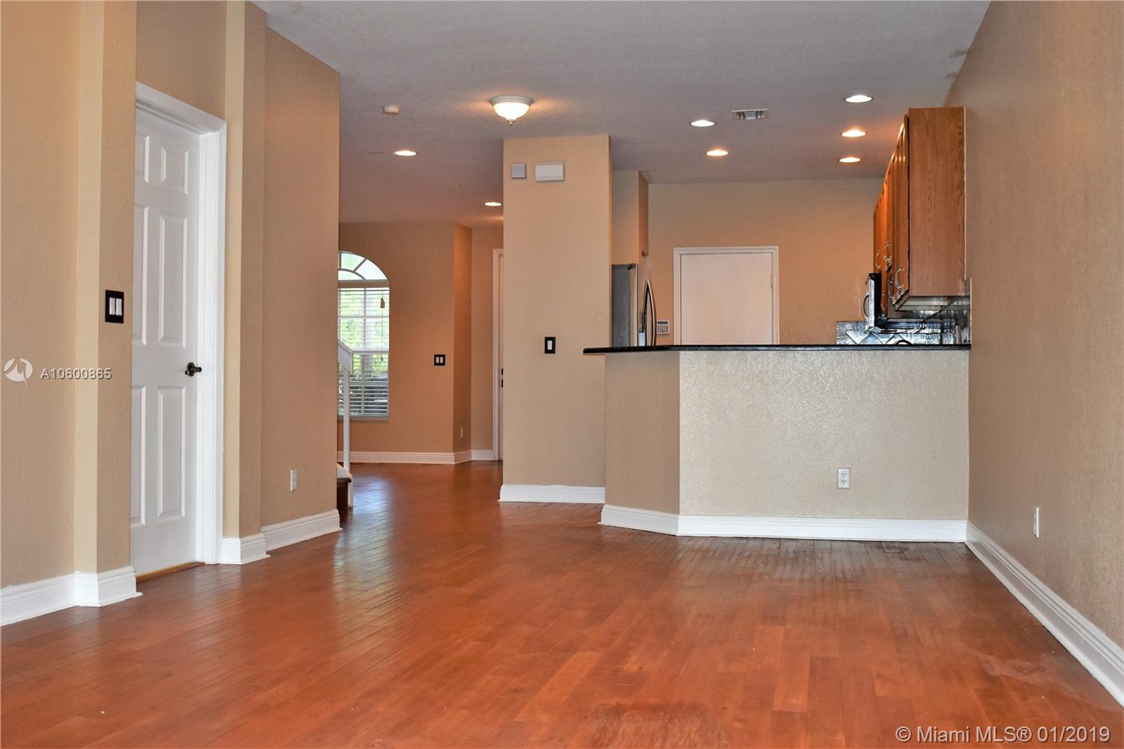Large and spacious 4 bedroom 3 bath townhome located in a gated community offers a good size rooms, one full bedroom and bathroom downstairs, bathrooms with granite counters, kitchen also with granite counters and stainless steel fridge, micro hood and range, and an oversized master bedroom with a bonus room and his and her closets, large master bathroom with tub and separate shower. Exterior features include accordion shutters, yard with the ability to fence, and a spacious driveway. HOA fee includes basic cable, alarm, and lawn service. Pets and rentals ok. Home located in a great location which s centrally located and in a great school district.