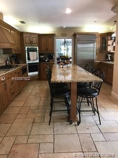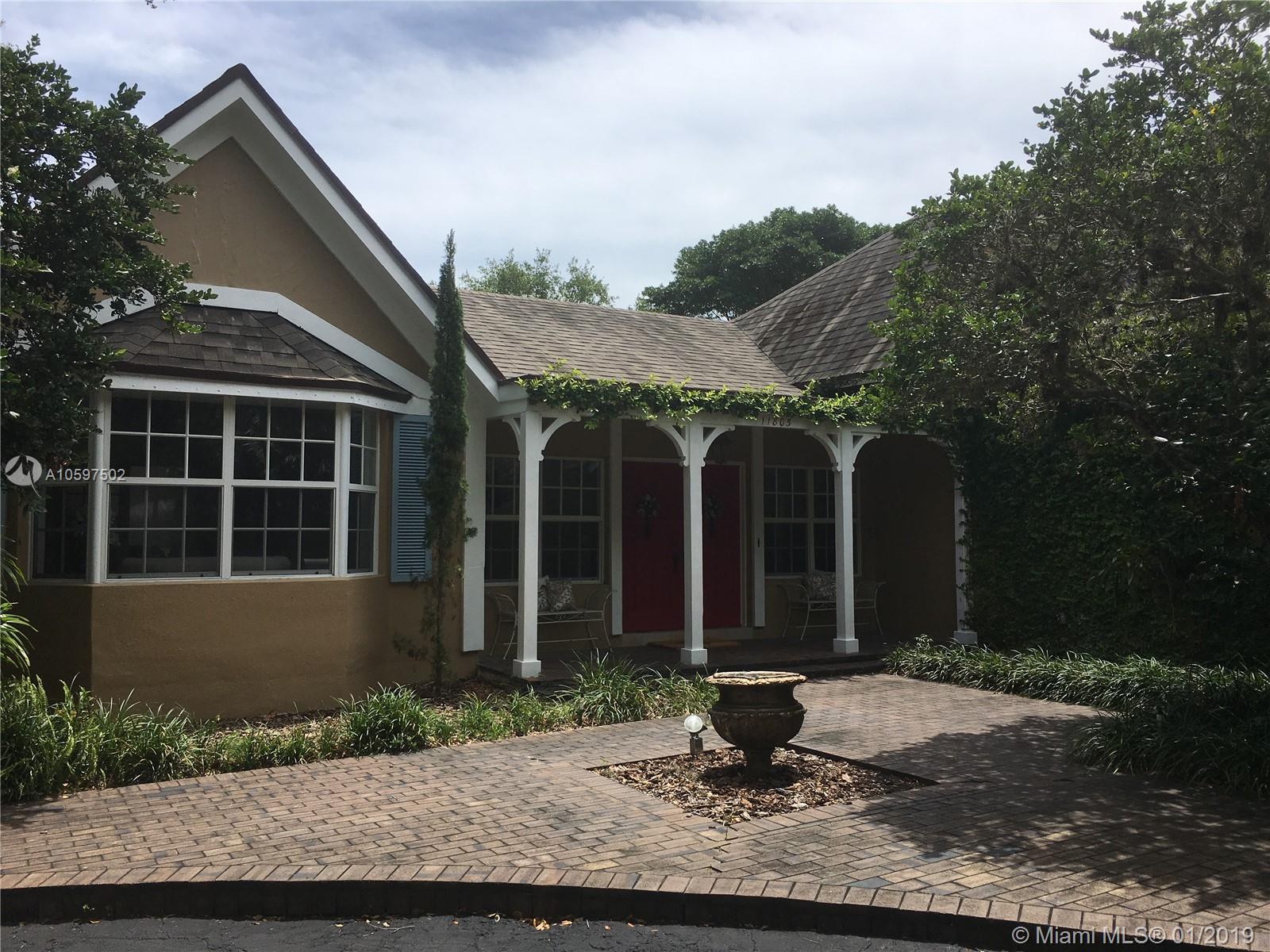 Unique & Charming 5 bedroom 4.5 bath Hollub built home in the heart of Pinecrest on spacious corner acre lot. The residence features a formal living room with vaulted ceilings & wood burning fireplace, formal dining room, 2 separate family/game room w/ vaulted ceilings, open concept eat-in kitchen, master suite with sitting room, office/nanny's room, laundry room, large covered terrace and spacious back yard with pool ideal for entertaining.
