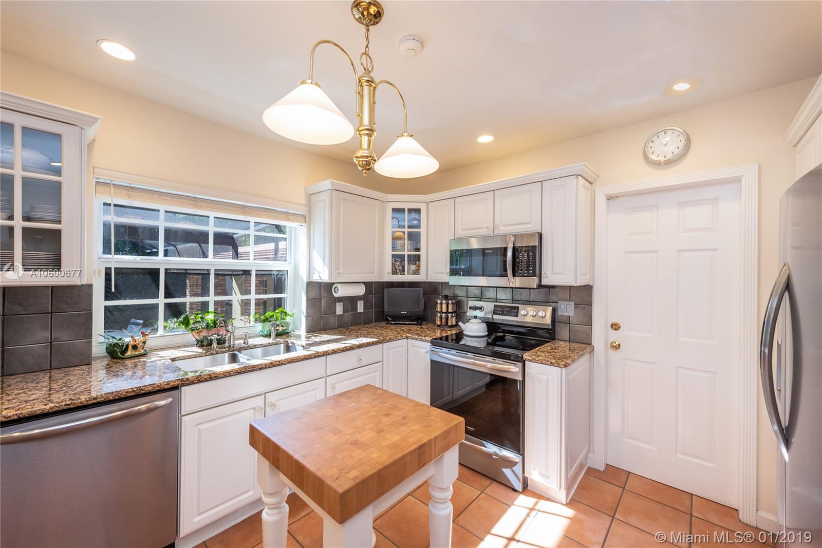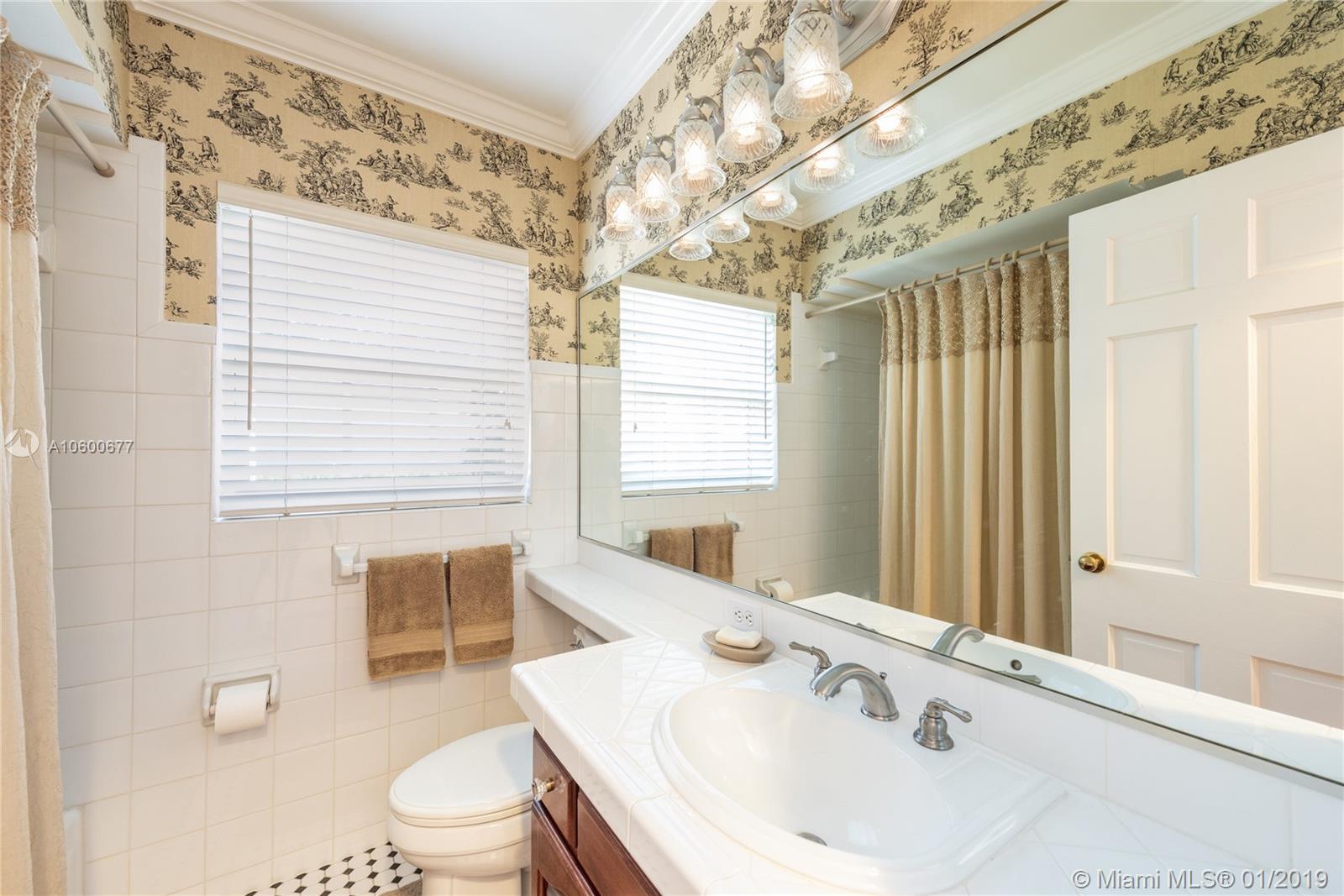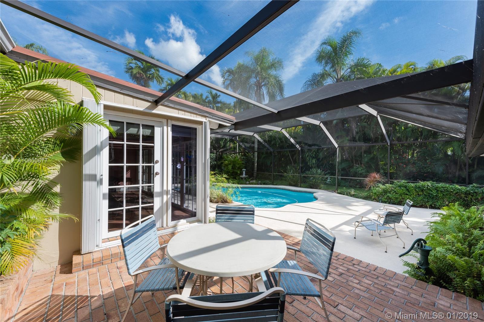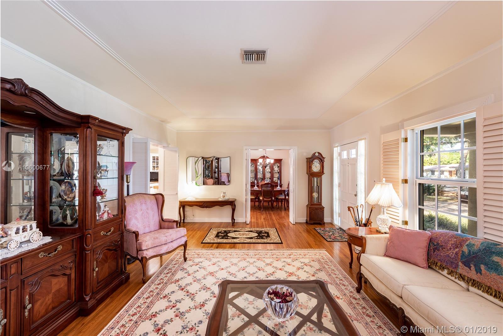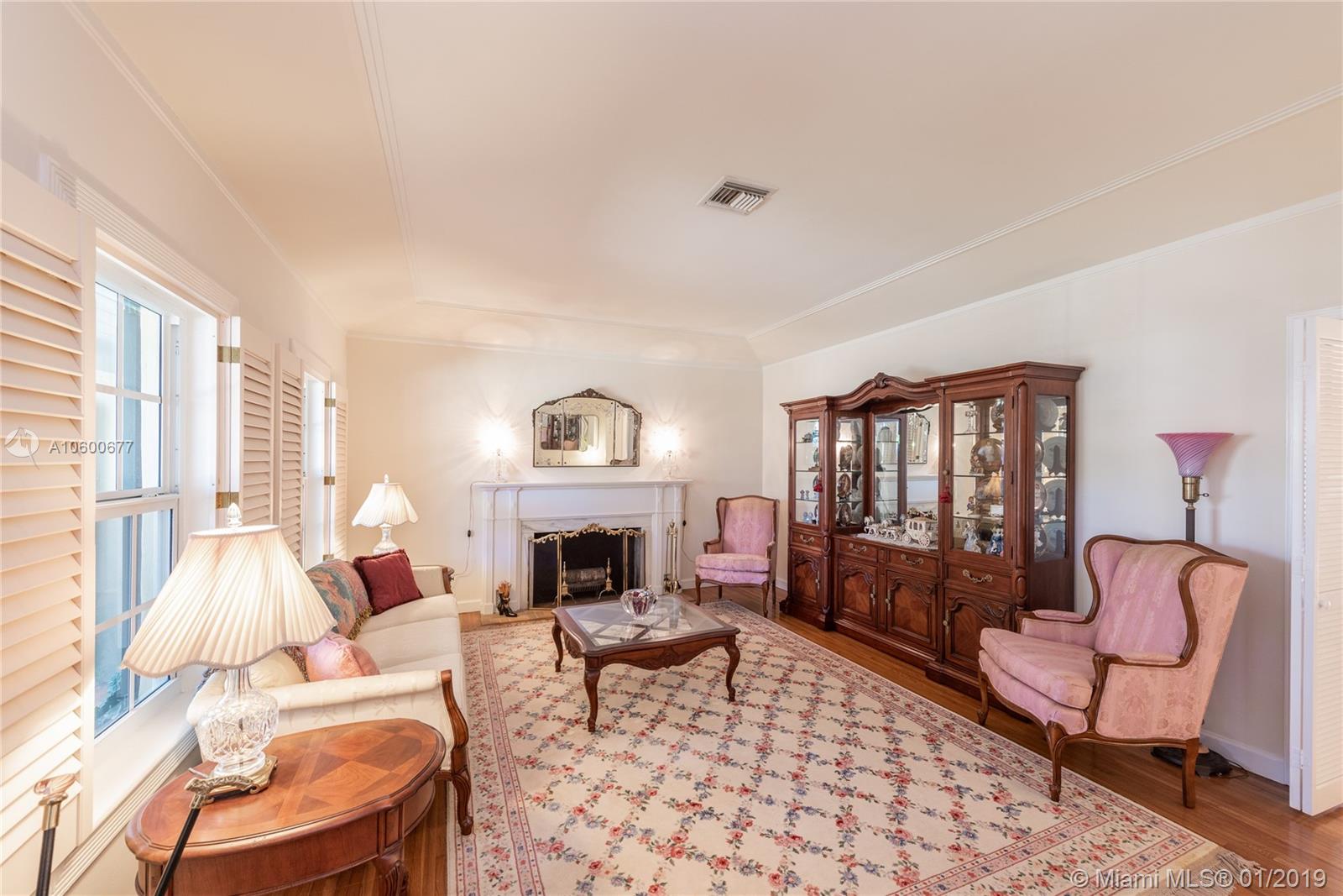 New Listing in the Golden Triangle near the Gables Library. One-story traditional home. 3 bdrm/2 bath + separate guest quarters (in-law suite) with a bath that overlooks the pool. Another full bath is next to the laundry room which could be a pool bath. (4/4 total). Also, space to create a large office under an existing roof. Living room w/fireplace and Formal dining room. A large Family room w/beamed ceiling has a wall of glass doors to the sparkling pool. Light, bright kitchen with new appliances and expansive counter space. The 2-car garage has a wide Chicago brick driveway. Over 2,500 adj.sq.ft on a 13,900 lot. Hardwood floors. Crown moldings. Newer roof. Impact windows/shutters for doors. Some updating will make this house a very special home for your family. FIRM PRICE. Easy to show.