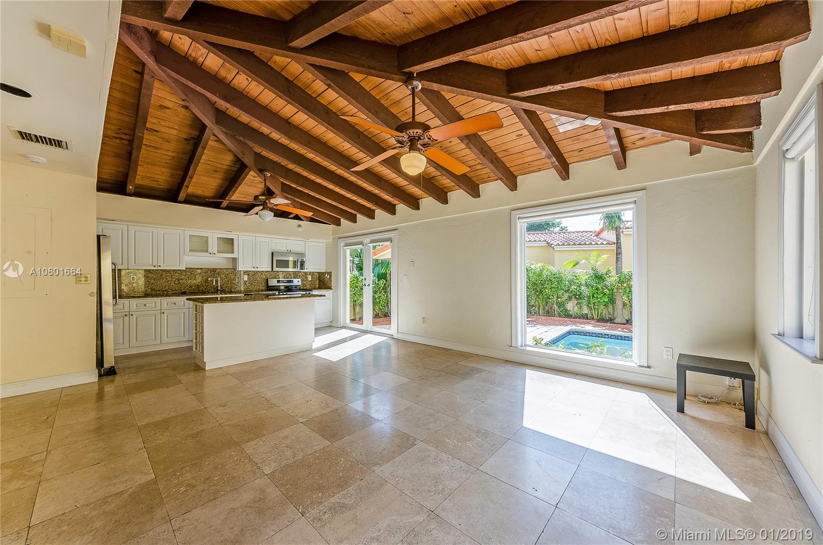 Charming home centrally located and one of few available homes with a pool in Coral Gables. Cherry wood floors throughout; fireplace in the living room and wood-beamed ceiling in the family room give this home a cozy and historic feel. Features include a converted garage, cabana bath, a very comfortable Jacuzzi spa in the patio, a lovely Gazebo and covered built-in BBQ grill; all making outdoor family affairs and events fun and welcoming.