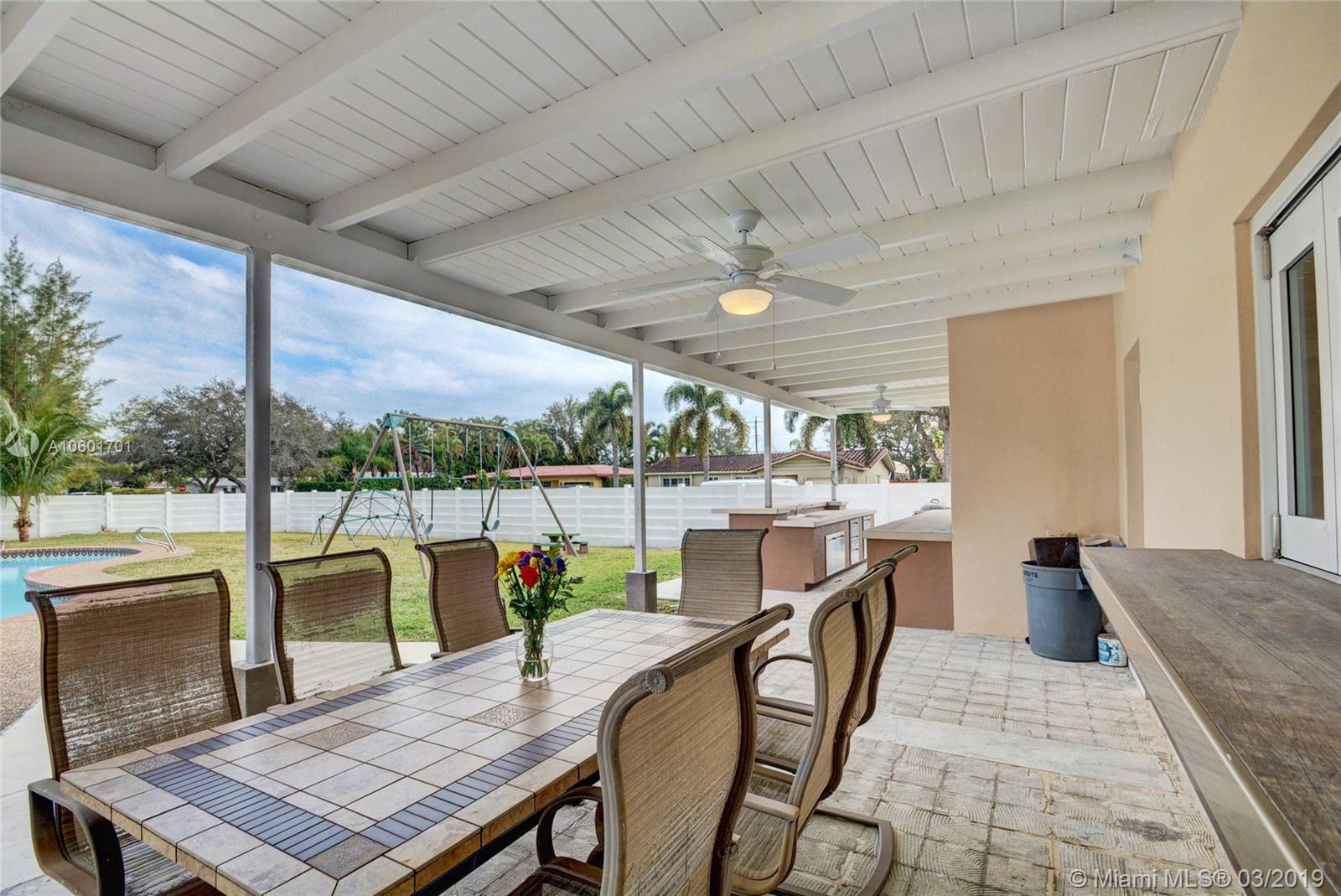 Absolutely gorgeous pool home completely remodeled to perfection w/ high end impact windows & doors throughout. Largest corner lot & one of biggest backyards in all Hollywood Hills! Living area is enormous, bright & beautiful w/ an exquisite vaulted tile ceiling, new tile floors & contemporary fireplace. Kitchen is incredible w/ cooking island w/ terrazzo counter tops, newer SS appliances & lavish kitchen cabinets. All bedrooms are large w/ excellent closet space, master bedroom is oversized with his/her walk-in closets. 1 bedroom downstairs w/ full bath accessible to pool area. Luxuriously renovated bathrooms. Oversized 2 car garage. Backyard is unbelievable w/ expensive complete outdoor kitchen, massive pool & gigantic fenced in backyard, wonderful for large parties & kids to play.