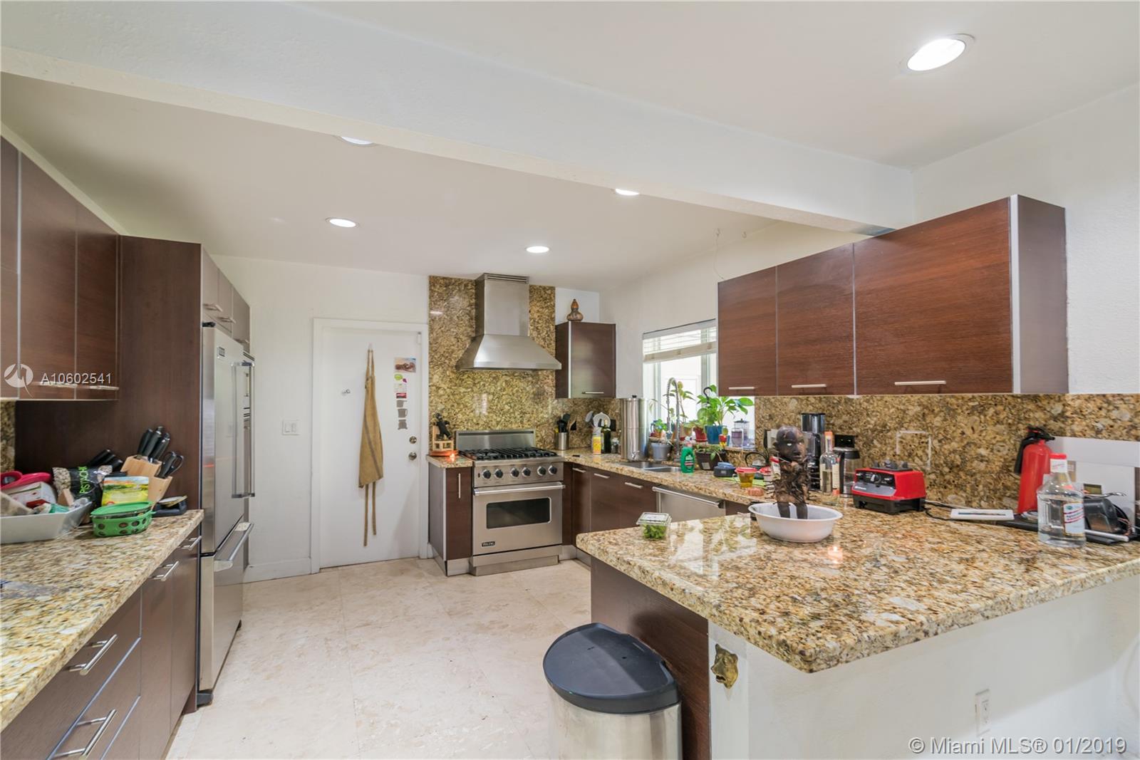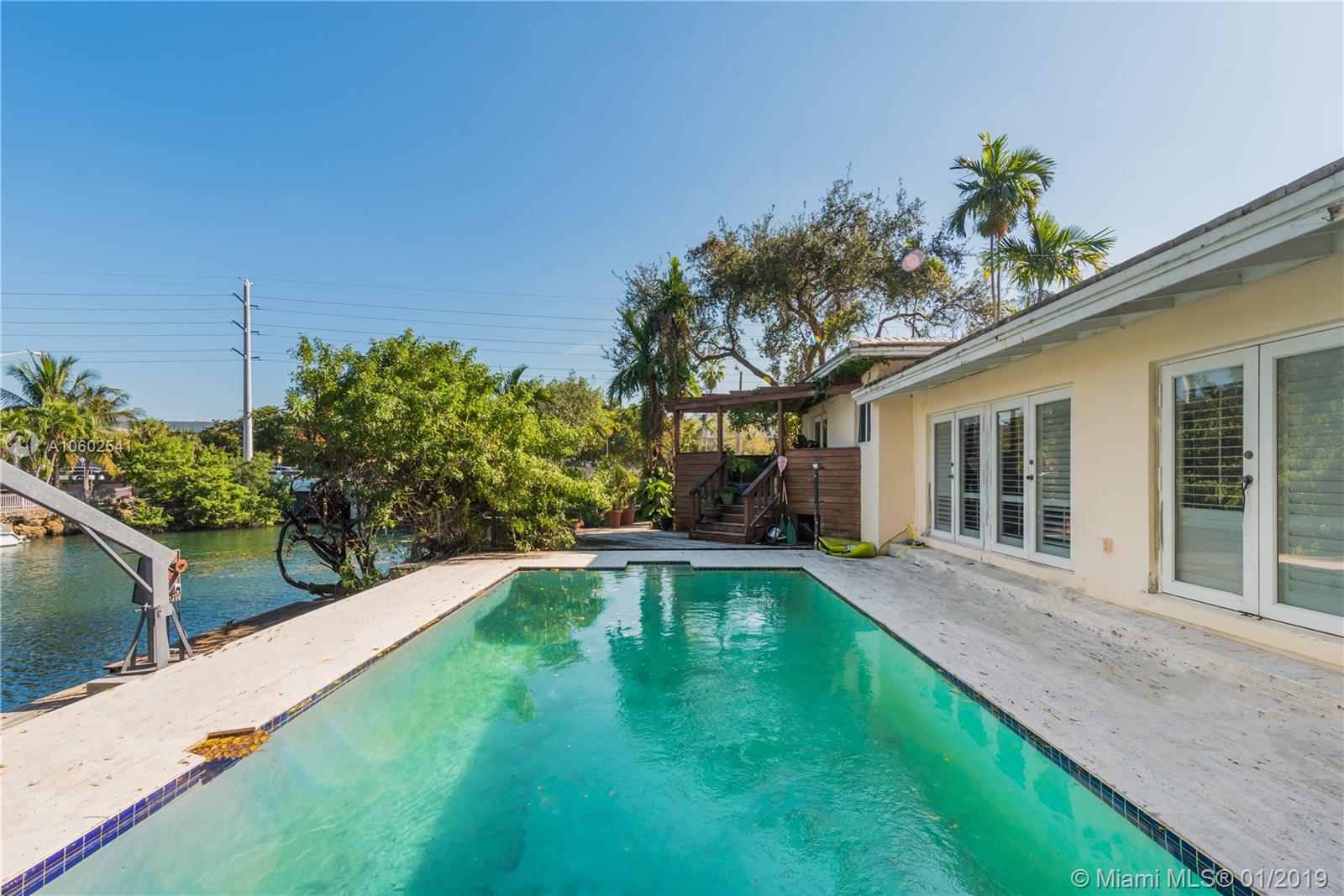 Estate Sale. 3bd/2bath, 2,292/SF home situated on an oversized 15,520 lot on the Gables waterway with ocean access. Dock can accommodate a 28ft boat. Open concept floor plan. Impact windows. Marble and Cuban tiles throughout the living room areas and dark wood laminate floors in the bedrooms. Renovated open kitchen with custom walnut wood cabinets, Viking Appliances and granite counters. Marble bathrooms, newer vanities and Hansgrohe shower in master bath. Natural stone pavers encompass the pool with custom wood deck. 2 Car Garage, brick paved circular driveway. Great location close to restaurants, shops and S. Grove. House needs some TLC. Contact Listing Agent to schedule a showing.