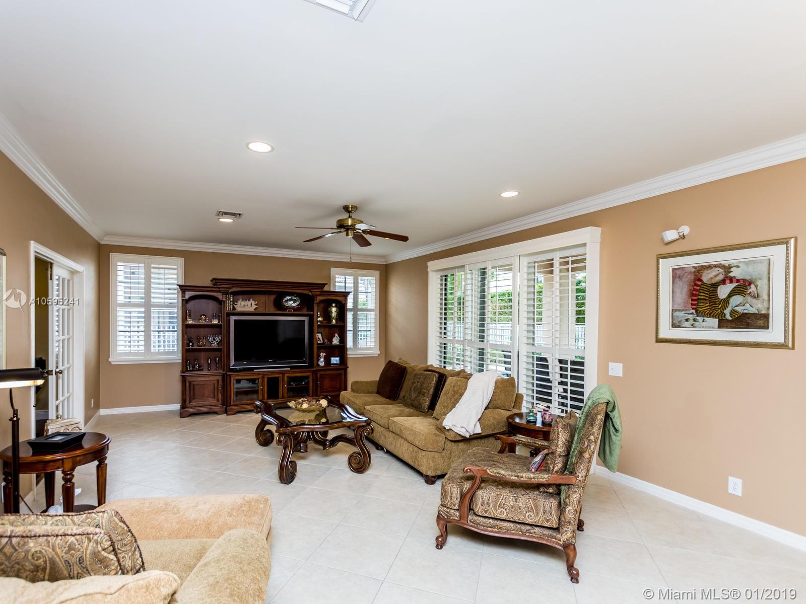 Pristine 6 bedroom/4 bath light and bright home with newer roof (2006) and new AC units (2017). Two story foyer, crown molding, neutral porcelain diagonal tile flooring, wood floor foyer and downstairs bedroom and upgraded carpeting in bedrooms/stairs. Stunning custom kitchen w/ granite, double oven, wood cabinets and top of line stainless steel appliances- perfect for cooking and entertaining. Open floor plan from kitchen to large family room w/ plantation shutters and adjacent bedroom w/ French doors. Grand master bedroom w/ updated master bathroom plus 4 large bedrooms incl. two with Jack & Jill bathroom. Tranquil backyard with covered patio, salt chlorinated pool and newer diamond brite. 2nd story has accordion hurricane shutters/first floor panels. Great neighborhood and A+ schools.