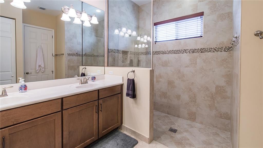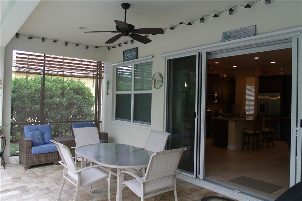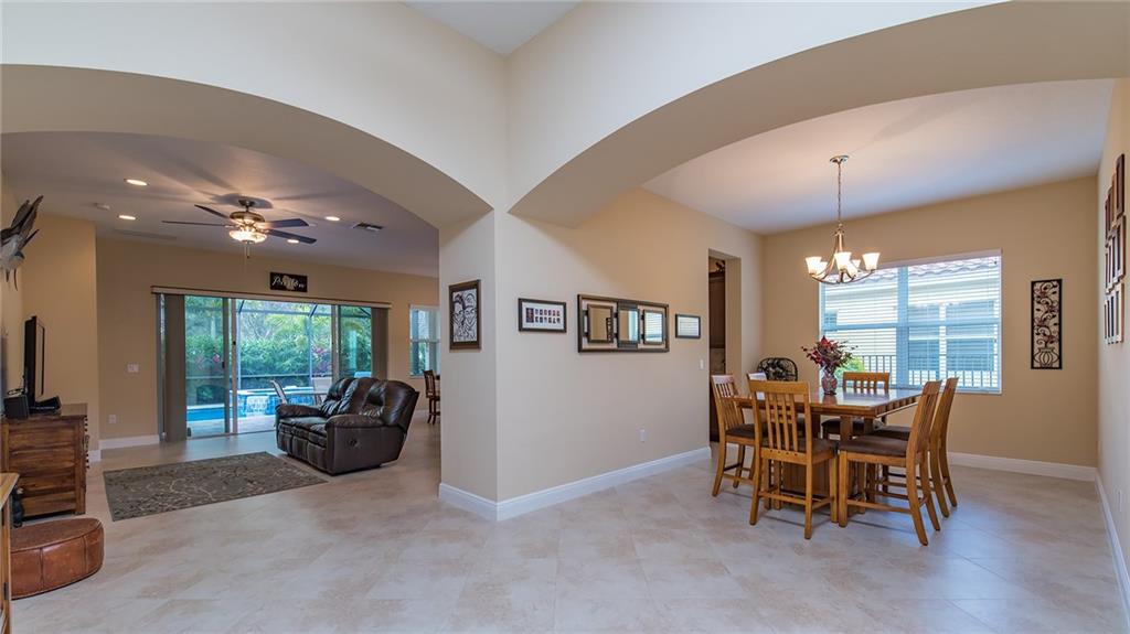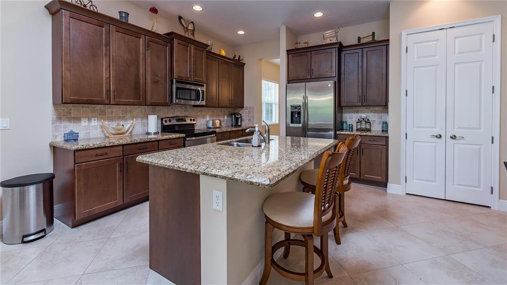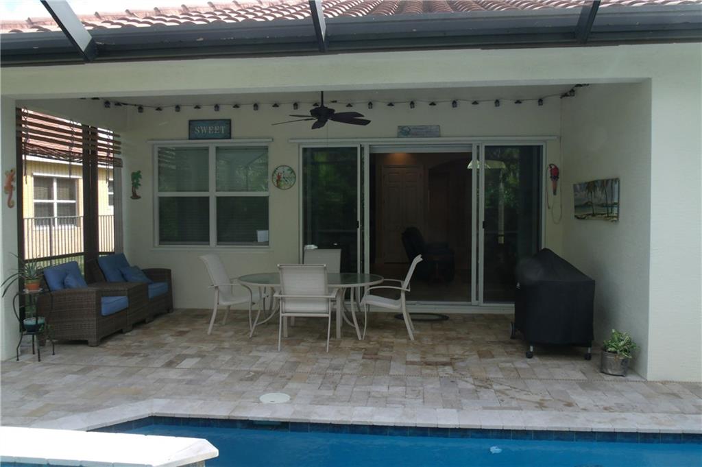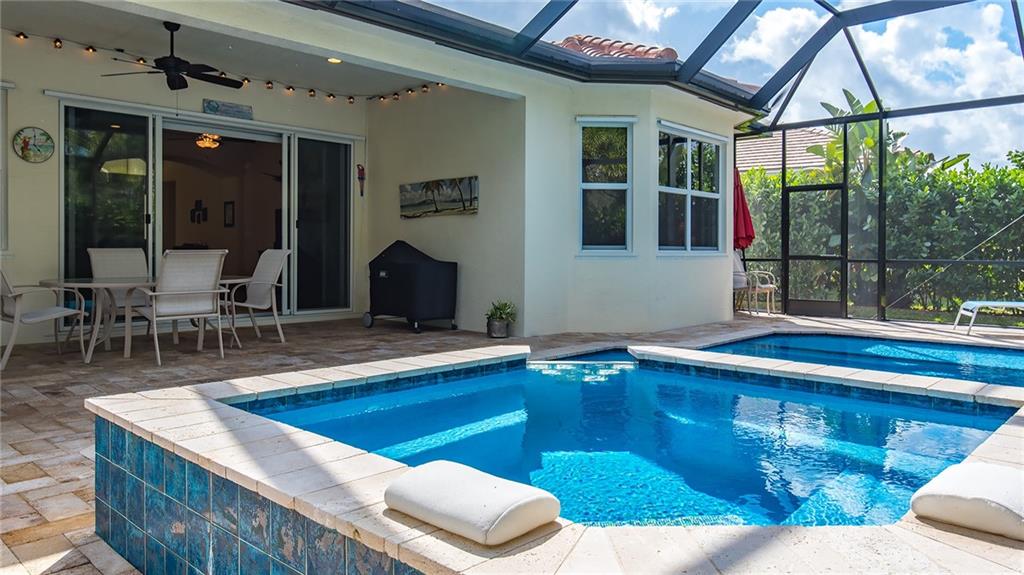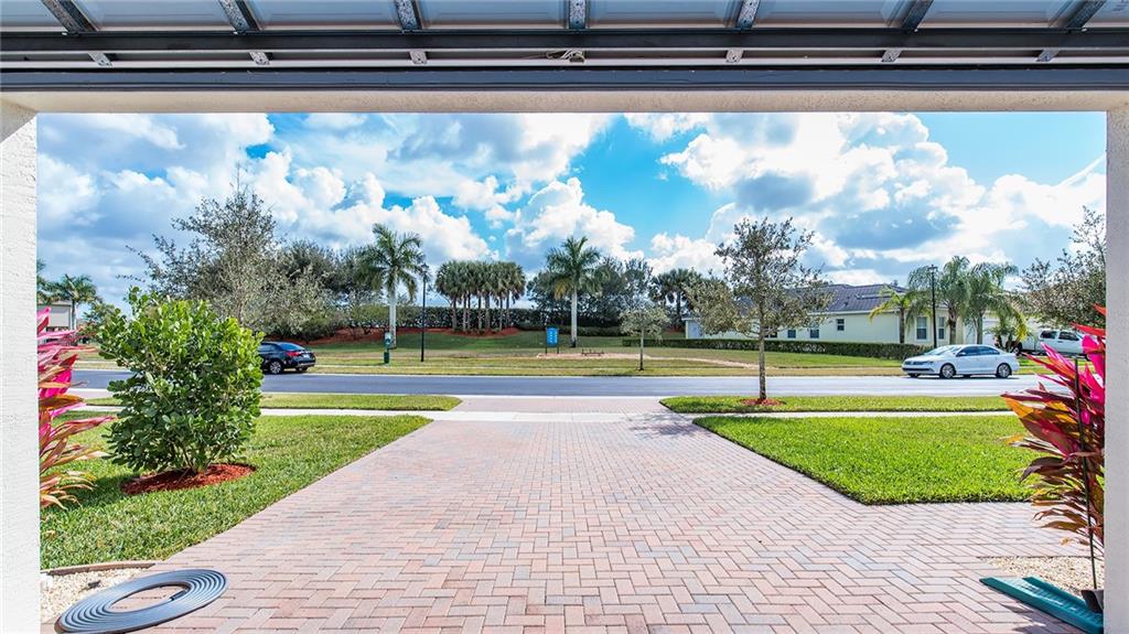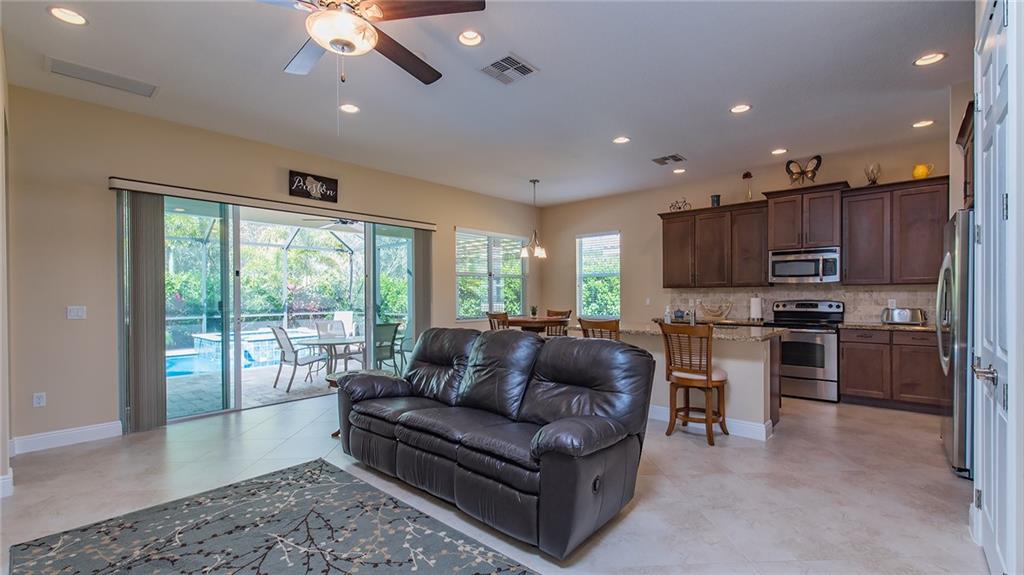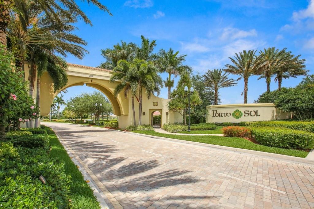 IMMACULATE 3/2 single family home across from green space in the beautiful community of Porto Sol. Great floor plan, open concept, tile floors, hardwood floors. Large open kitchen, dark wood cabinets, granite counters, soft close drawers, stainless steel appliances, large pantry. Spacious master, two walk-in closets, large tiled shower. Fully screened-in natural stone patio with heated pool and spa. Beautifully landscaped setting. You'll want to see this home!