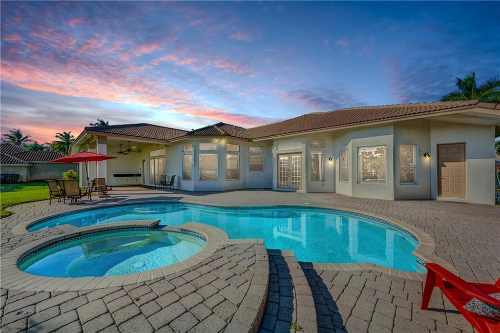 West Davie Luxury! This entertainer's dream features 6 bedrooms plus den/office, 4 full baths, 1 half bath and 3 car garage. The triple split floorplan also includes a 2nd family room or children's playroom. Situated in a boutique gated neighborhood, this home has a prime cul de sac location with a large circular driveway. The private builder's acre lot boasts a pool, water views, and outdoor entertaining space. Chef's kitchen includes walk-in pantry, center island, 2 dishwashers and 2 sinks along with custom cabinetry and granite countertops. With over 5000 sq feet, this home truly exhibits the best floorplan and has architectural details throughout. A rated schools! Don't miss this gem!