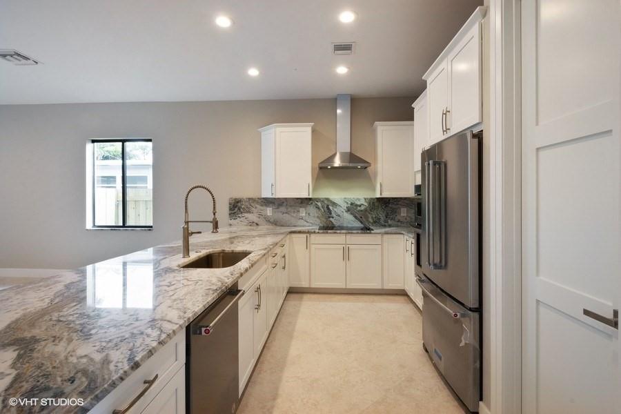 Modern New Construction Home by high-end luxury builder, Scott Douglas Homes. Modern, open single-story design; three spacious bedrooms; two lavish baths including frameless glass and upgraded body spray/shower combo in master; dream kitchen with upgraded Kitchen Aid stainless steel appliances, quartizite countertop with backsplash and custom waterfall, and walk-in pantry; large laundry/utility room; 2-car garage with custom epoxy floor covering; marble pavers; large, private, covered patio off pool; volume 10' ceilings; 8 ft solid doors; walk-in closets; custom cabinetry and hardware; porcelain flooring; pre-wired for smart home technology. Minutes from Brightline highspeed train, airport, & walking distance to downtown Fort Lauderdale's exciting shops and restaurants. Plans attached.