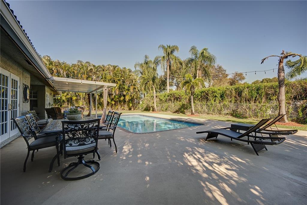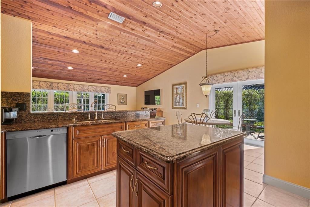 AMAZING OPPORTUNITY TO PURCHASE THIS HIGHLY UPGRADED HOME FROM LONG TERM OWNERS FILLED WITH UPDATES INCLUDING NEW CENTER ISLAND KITCHEN WITH WOOD STONE COUNTERTOPS & TOP OF THE LINE APPLIANCES, WOOD FLOORS,REAL BRICK FIREPLACE,TONGUE AND GROOVE WOOD CEILINGS,REMODELED BATHROOMS, FENCED TROPICAL BACKYARD WITH OVERSIZED RESORT STYLE POOL AND IMPACT WINDOWS THRU-OUT. VERY PRIVATE NEIGHBORHOOD WITH ONE WAY IN AND OUT AND NO HOA