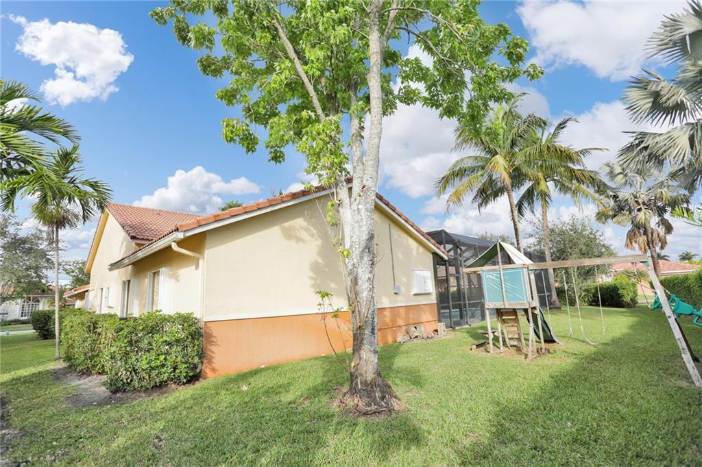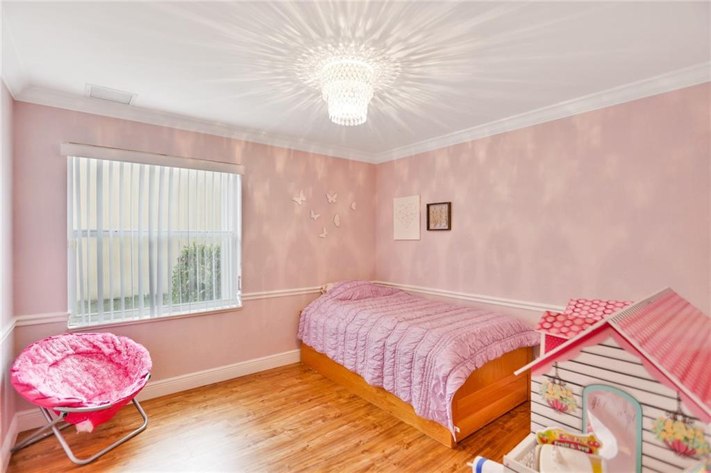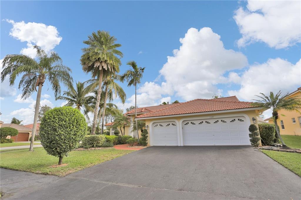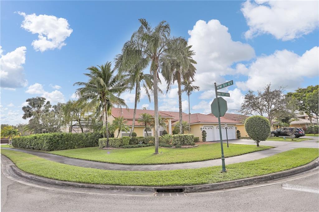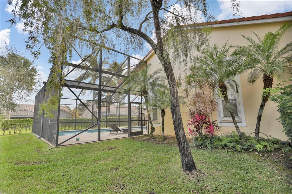 Magnificent home in the exclusive Kensington Gardens. You will be welcomed by soaring high ceilings and hardwood floors in this 5/4 with 3 car garage. You are sure to love the open floor plan and split bedroom layout. A private in-law suite in the back of the house is an added bonus. Matriculates hand crafted solid red oak kitchen cabinets with incredible upgraded features. A huge granite center island as well as stainless steal appliances complete this chef's dream kitchen. 2005 roof is in excellent condition as well as 2 A/C units from 2010. Easy to close hurricane shutters as well as an alarm. This 2015 custom built Van-Kirk heated pool with swim out bench and two therapy jets & 1000 SqFt of natural Travertine, complete this huge corner lot oasis that has ample space for entertaining.