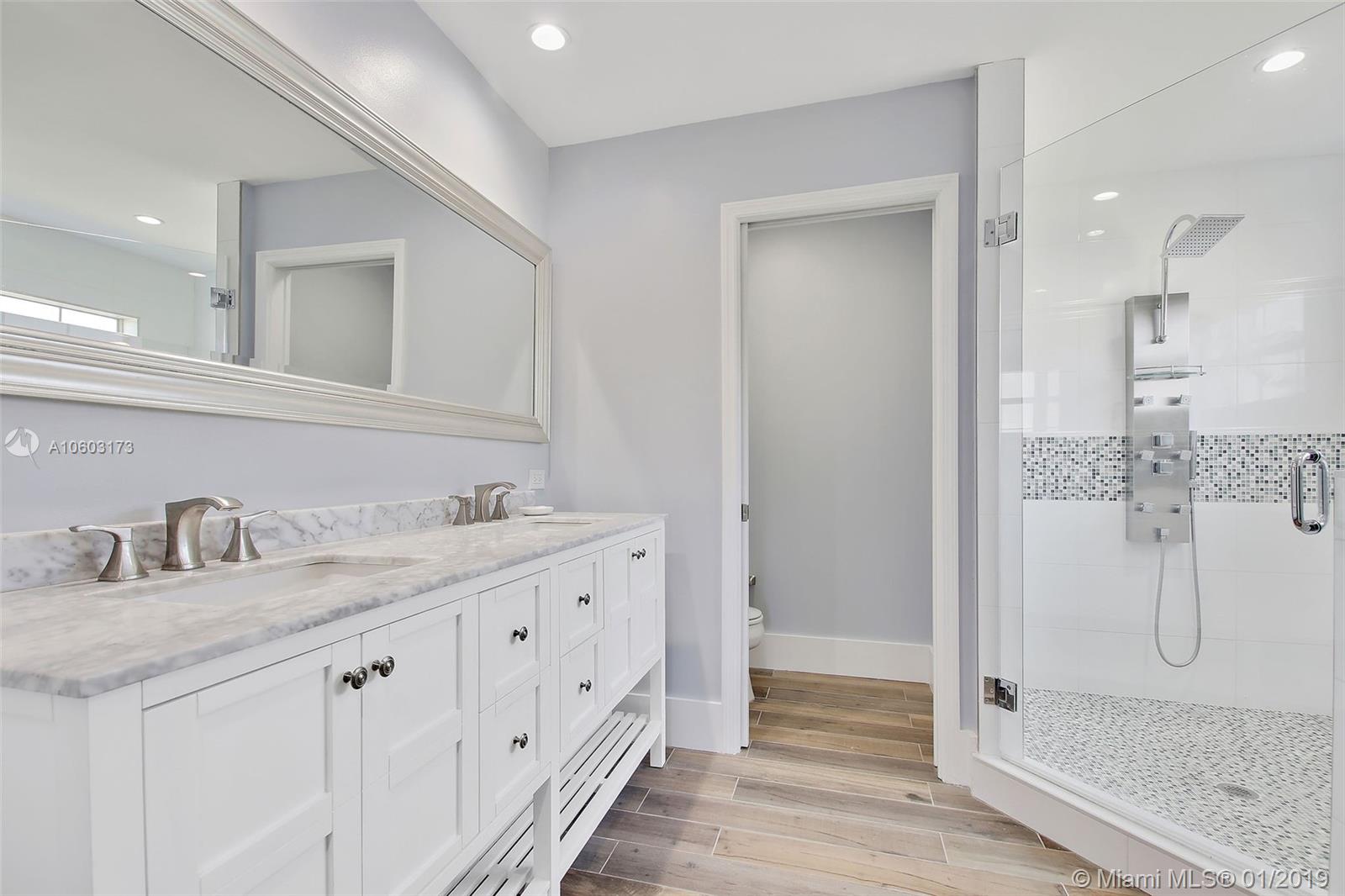 Spectacular & completely renovated home in highly sought-after Plantation Acres. Home is a true turn key property. Features 4 bed & 2.5 baths with a 2-car garage & a heated saltwater pool. Tastefully renovated with wood like plank tile flooring throughout and oversized baseboards. Master bathroom features dual sinks and an oversized shower. Grandmaster bedroom includes his and hers closets. The kitchen includes all new cabinetry with granite counters, tile backsplash & SS appliances. Split bedroom floorplan provides plenty of privacy. Tankless water heater and a separate laundry room for your convenience. Plantation shutters add a touch of elegance. Freshly painted exterior and interior with modern tones. Paver driveway provides for plenty of parking. PLEASE SEE BROKER REMARKS.