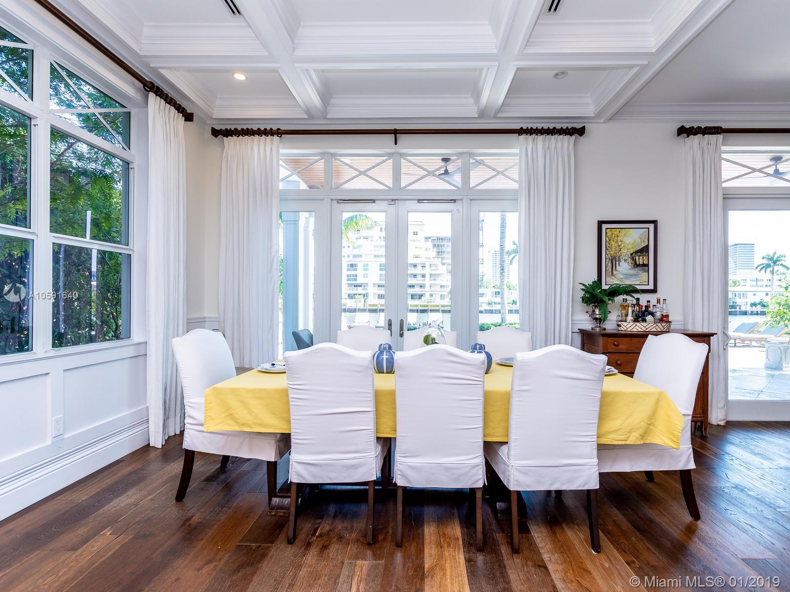 Exudes the feeling of "HOME" the minute you walk into this custom built designer British west indies style home which boasts 100' of Intracoastal Waterway, with an 80'X10' concrete dock. Complete with 6 FULL bathrooms in main house and 1 FULL bathroom in "Mother in Law Suite". Main house has 4 ensuite bedrooms, an office off of the kitchen and mudroom. The 4th bedroom has 2 bathrooms, "the bunk room", is 28'11" X 15' a total of 421.65 sqft designed to be converted into two bedrooms if needed. A wood burning fireplace in the upstairs family room. Custom built-ins. Open floor plan to maximize the Intracoastal Waterway views. Truly a unique home with top of the line kitchen and finishes throughout in the most sought out community in all of Fort Lauderdale, Sunrise Intracoastal.