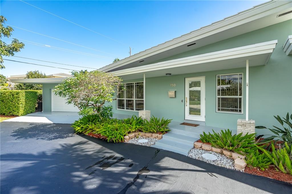 Mid-Century Modern Gem located in gated Sunrise Intracoastal neighborhood. With beautiful curved walls and angled rooms, this 3 bedroom/3 bath home was designed ahead of its time! Plenty of natural light enhance this split bedroom plan. The generous master suite features oversized bedroom, separate office, walk-in closet, separate shower and tub, plus dual bathroom counters. The gourmet kitchen offers double wall ovens, warming drawer and custom glass built-in table. Additional bathrooms have been updated. Impact windows and doors add safety and energy efficiency plus enhance the design. Mature landscaping highlighted by a Rusty Fig Tree creates serene environment enjoyed from the generous composite deck. Oversized 2-car garage offers an additional washer/dryer hookup.