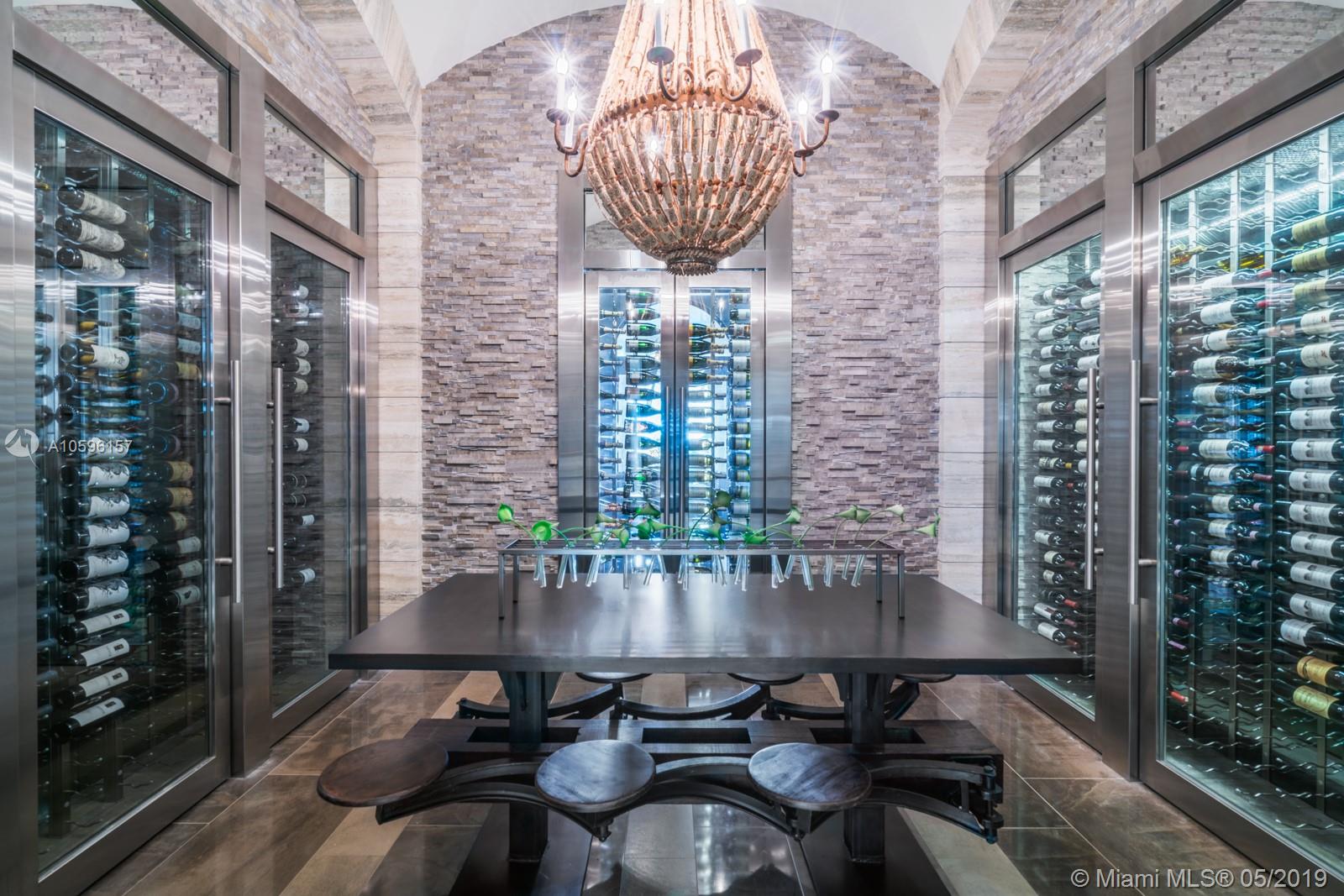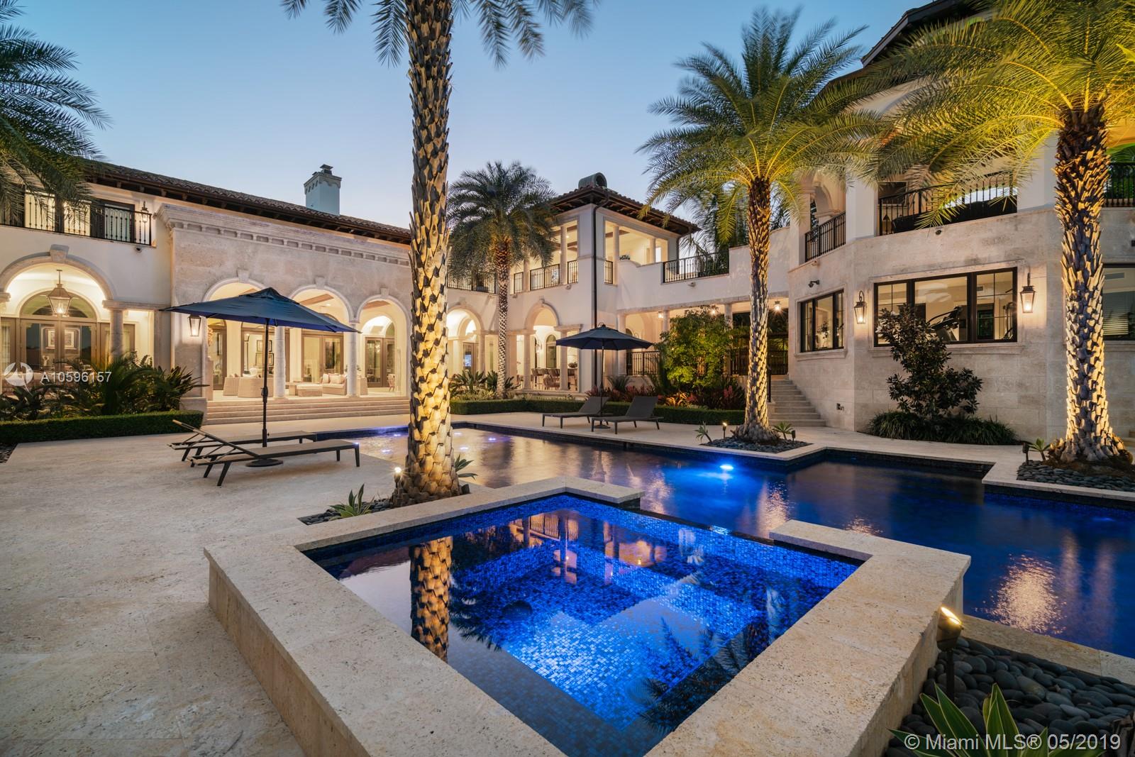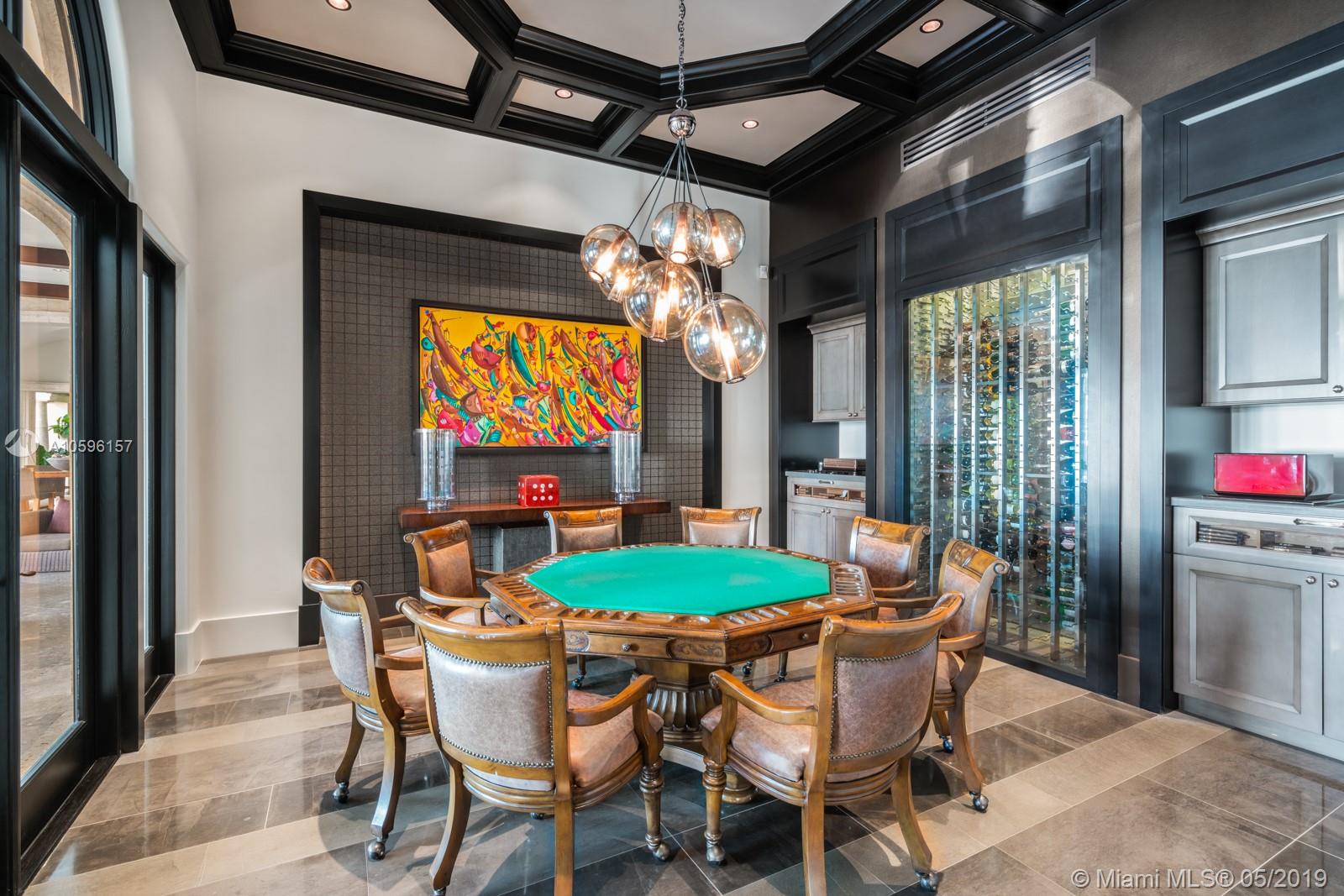 Elegant estate in exclusive, gated Tahiti Beach. Double height ceilings in living room to showcase prized art work, dining room for 12+. Den/Library with built in wood shelves. Chef's kitchen with eat-in countertops, breakfast nook, gas ovens/6 burners, double refrigerator/freezer, full butler's pantry. Movie screening room with built-in bar & beverage center. A 2,500 bottle glass wine cellar with 3 temp. controlled zones, large family room features a saltwater fish tank and backlit onyx full bar. Poker/card room with direct access to incredible covered patio that leads to pool, boat dock, home gym/sauna, health bar.