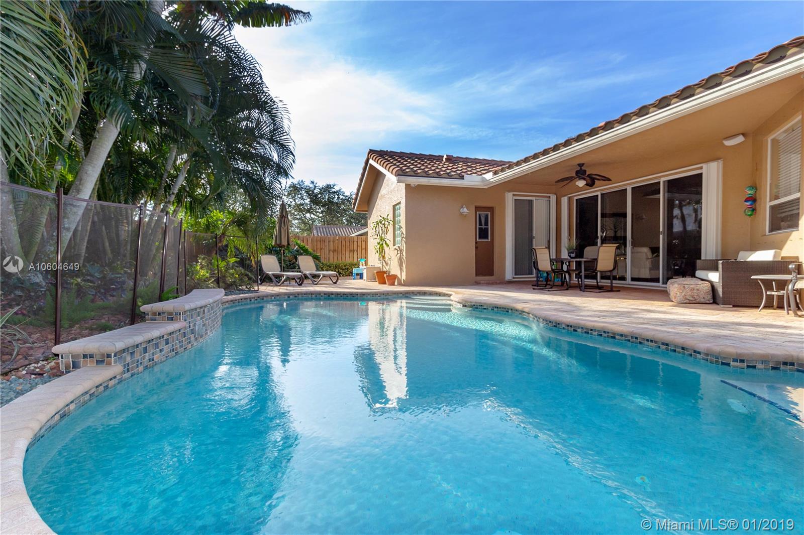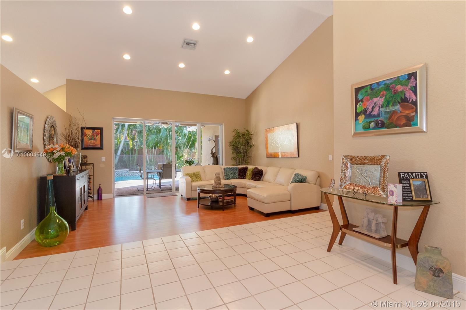 Incredible 4 bedroom 2.5 bath located in the heart of Cooper City in Embassy Lakes. This home welcomes you in and provides curb appeal galore with a beautifully landscaped circular driveway. A newly renovated kitchen sits at the center of this gorgeous vaulted ceiling home boasting granite counter tops, stainless steel appliances and beautiful wood cabinetry. All 4 bedrooms include wood laminate flooring and 1.5 bathrooms have been completely renovated. An oasis awaits outside with a gorgeous private pool, and incredible landscaping. A great space to entertain with family and friends or relax peacefully in the morning. A combination of accordion shutters and traditional shutters. Both the roof and A/C were redone/installed in 2013. A great neighborhood with many clubhouse amenities!