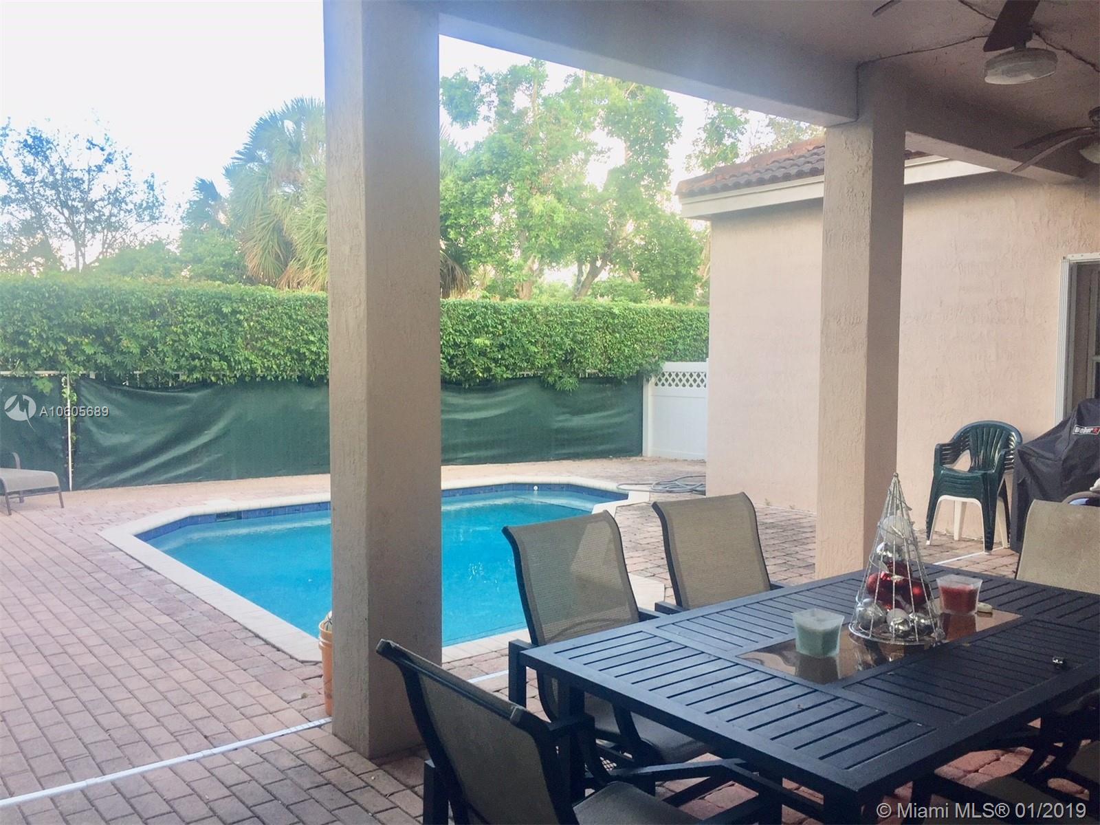 Beautiful 3 bed, 2 bath with a pool in Savanna in Weston, Florida. Property has a 2-car garage, modern stainless steel appliances, granite countertop kitchen, large capacity frontload washer & dryer, costumed designed wood California closets, wood floor in all bedrooms, and childproof fence around the pool. A/C unit is 4-5 years old. The schools for Savanna Community residents can go to Gator Run Elementary School, Falcon Cove Middle School and Cypress Bay High School. Tenants to move out May 7th 2019.