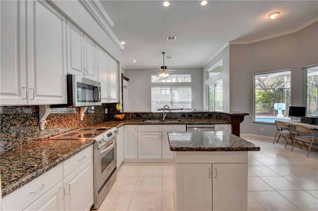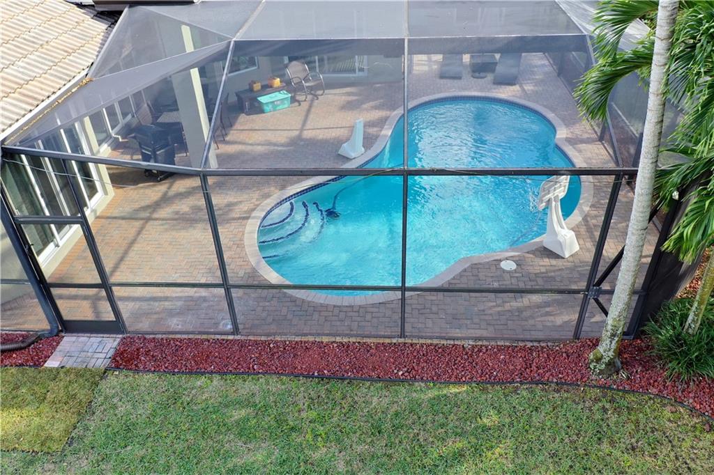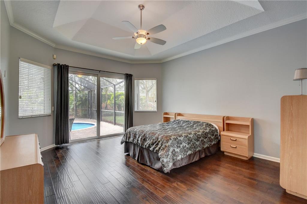 5 Bedroom, 3 Bath, 3 car garage on amazing cul-de-sac lot! Seller relocating after purchasing less than one year ago and making $70,000 in improvements including new Impact Windows, new Water Heater, Pool resurfaced & converted to salt water system & new pump motor, freshly painted interior, new wall unit, new wood blinds, new appliances, converted all light receptacles to LEDs and added new landscaping with fruit trees. Other features include open kitchen & family room, remodeled bathrooms, newer wood flooring in all bedrooms, Hurricane proof garage door, heated pool, guard gated community near A-rated schools.