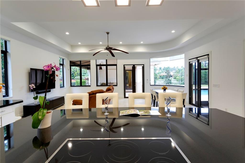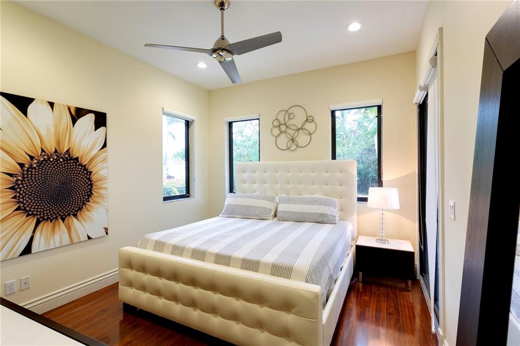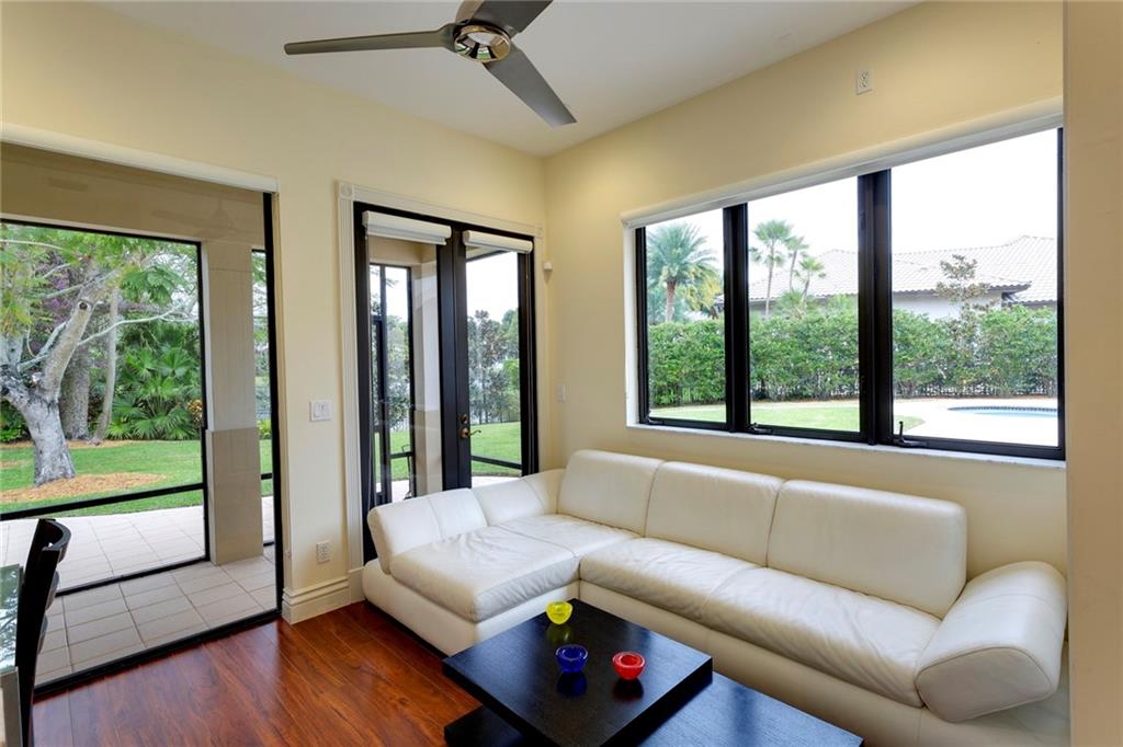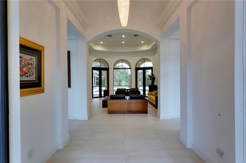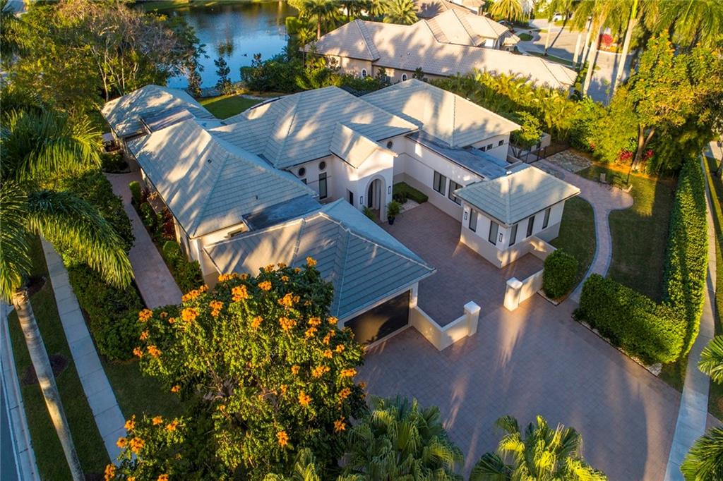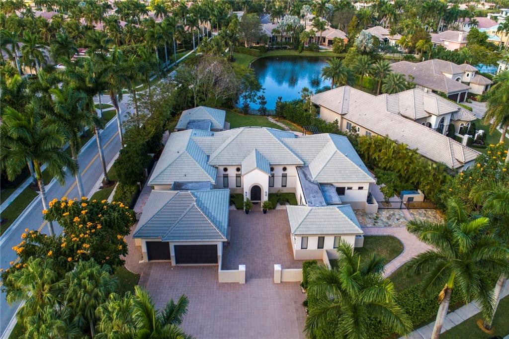 Custom lakefront estate in the heart of Hawks Landing! Contemporary in style that offers 4 bedrooms in the main house and 2 bedrooms in the guesthouse joined by covered breezeway overlooking fabulous patio and pool area! Sleek architectural styling with expansive courtyard entry! Italian porcelain floors through out main living area. Newly installed ebony hardwood floors in Master suite, and 2 secondary bedrooms. Perfect layout with hallways for those that would love to display their treasured artwork! Impact windows and doors, 3 car air-conditioned garage, full house generator! Amazing modern chef's kitchen with island overlooking family room. Designer lighting throughout, coffered ceilings! Summer kitchen and much more!
