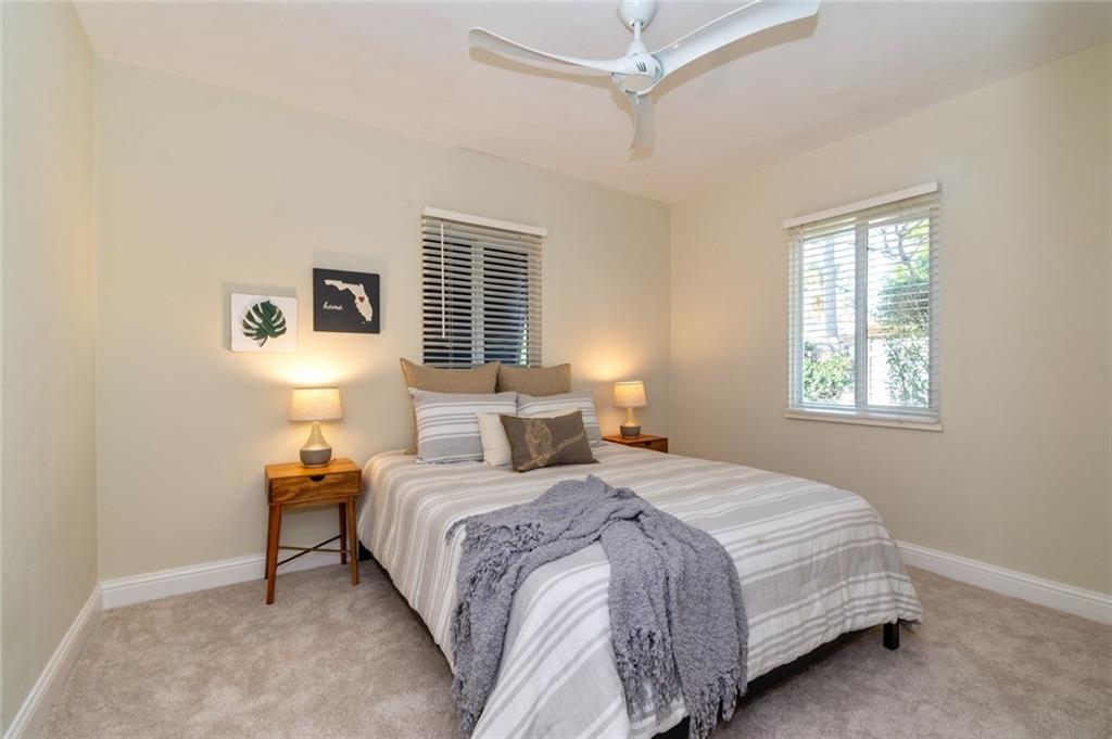 MJUST SEE, MOVE IN READY HOME IN DESIRABLE POINSETTIA HEIGHTS! A single story mid-century modern 2 BR/1 BA home, with the original third bedroom tastefully converted to a dining room, features impeccable renovations throughout. Today's modern finishes with original charm maintained. Top of the line stainless steel appliances in completely expanded kitchen, with open bar to living room, perfect for entertaining. Handcrafted built-in media center/library includes wall mounted SmartTV with no visible wires and custom cedar closets throuhout. MBR boasts sitting/dressing/home office area, with private access to deck and lush gardens. Landscaping is meticulously maintained and creates a private oasis to enjoy year round. SEE IT TODAY, MOVE IN TOMORROW!
