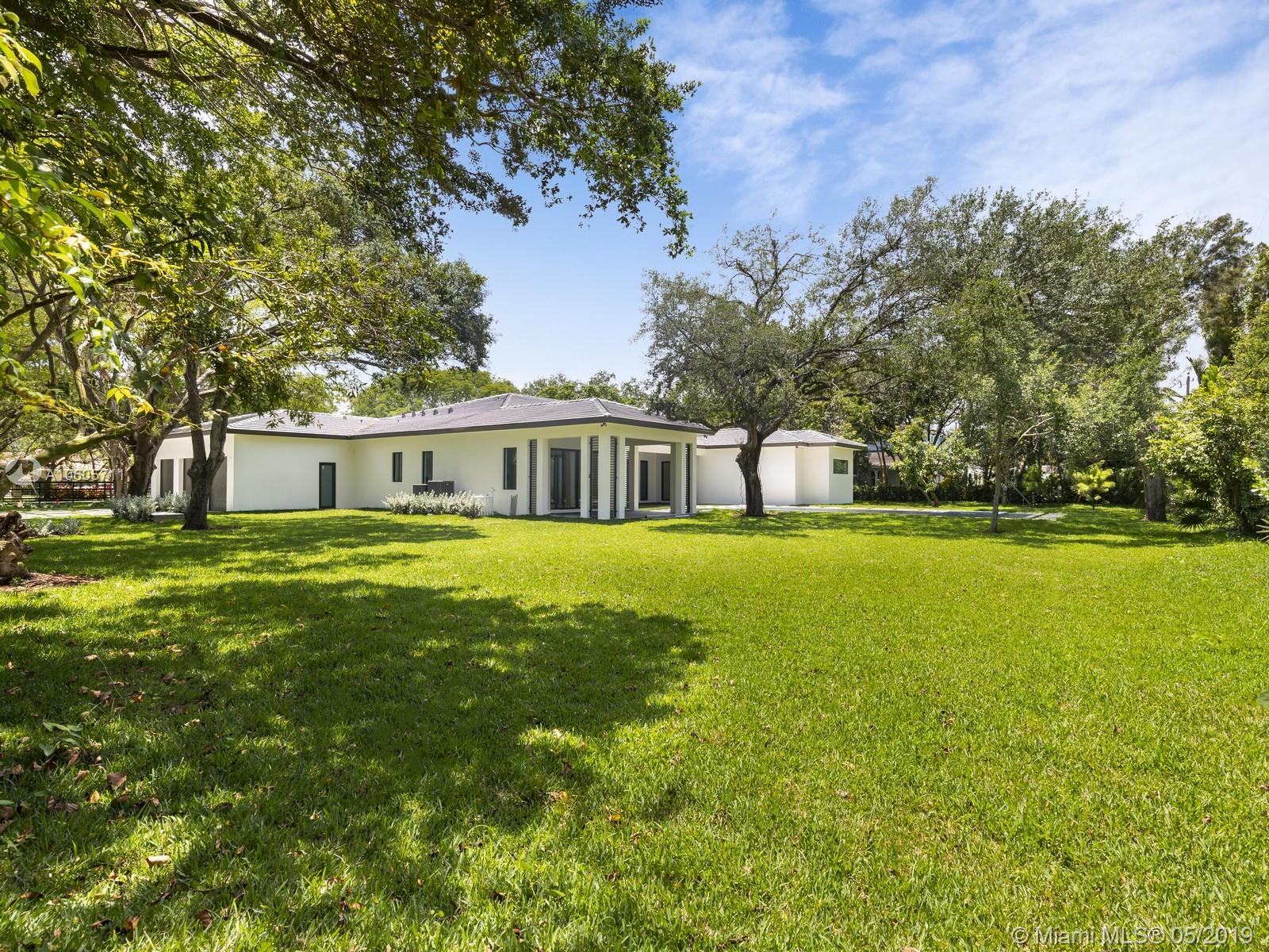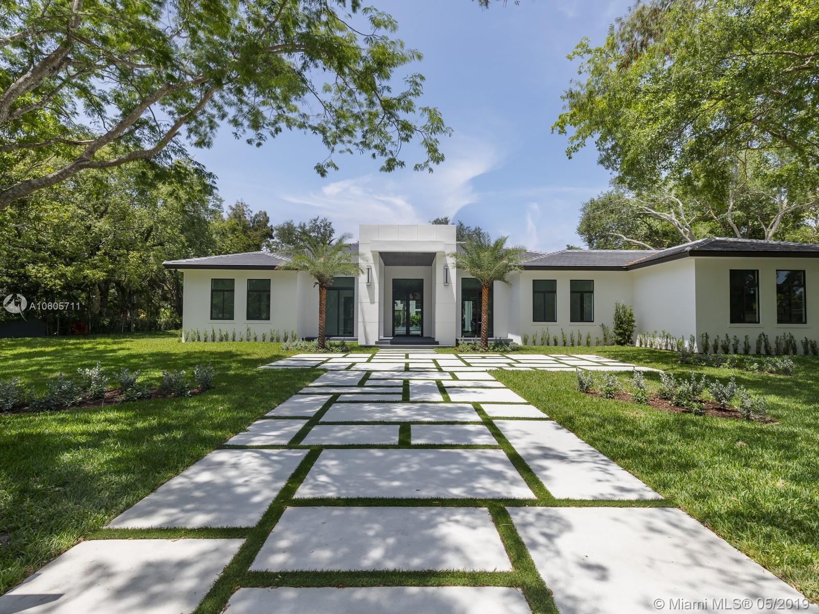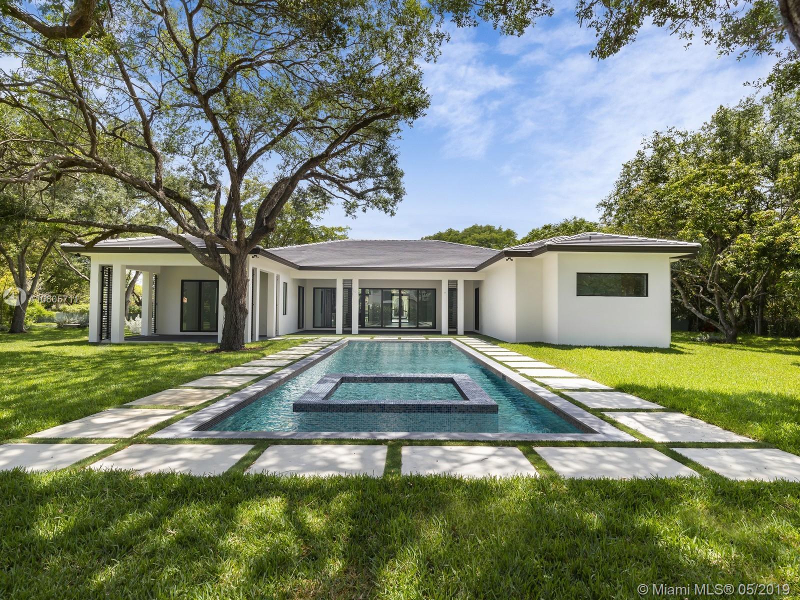 Brand New Construction & nearly ready for occupancy. Almost 1-acre property is well located on a beautiful Pinecrest tree lined street. The transitional architecture of this home offers a great one-story design. Walk into a great foyer & living area w/an entertainment counter. Spacious kitchen w/Subzero & Wolf appliances, wood cabinetry & Quartz counter tops. The master suite offers oversized closet, resort style bathrm w/double vanities & huge shower. Secondary bedrooms have their own en-suite bathrooms & WIC. Additional Features: High ceilings, Impact windows & doors. LED lighting, porcelain floors, media close. Oversized covered terrace, large motor court, 3 car garage, ample yard w/ pool & Spa, summer kitchen, & mature trees. Great location, schools. 1-year builders’ warranty!