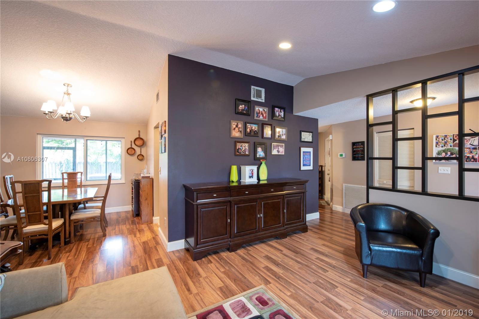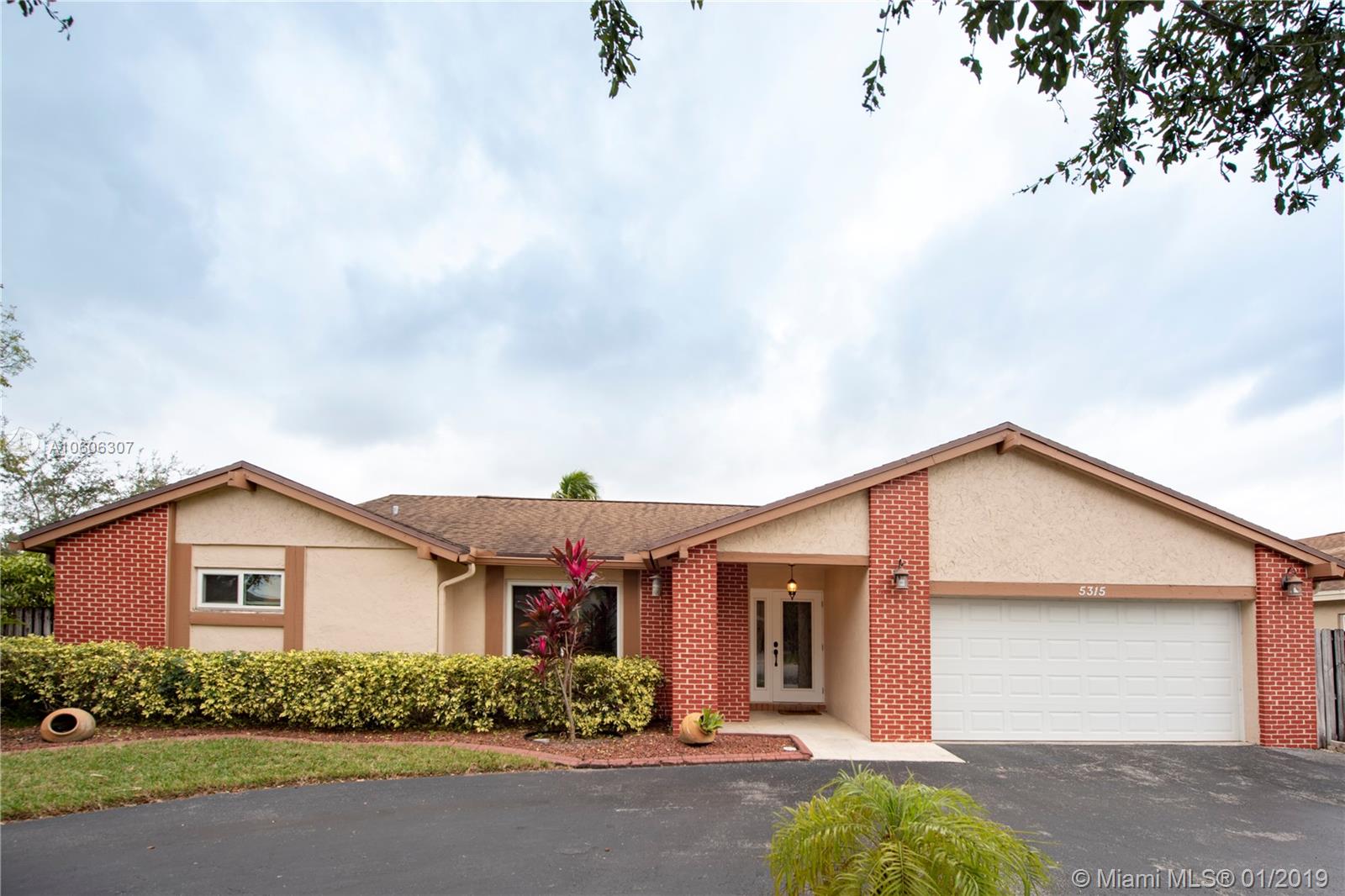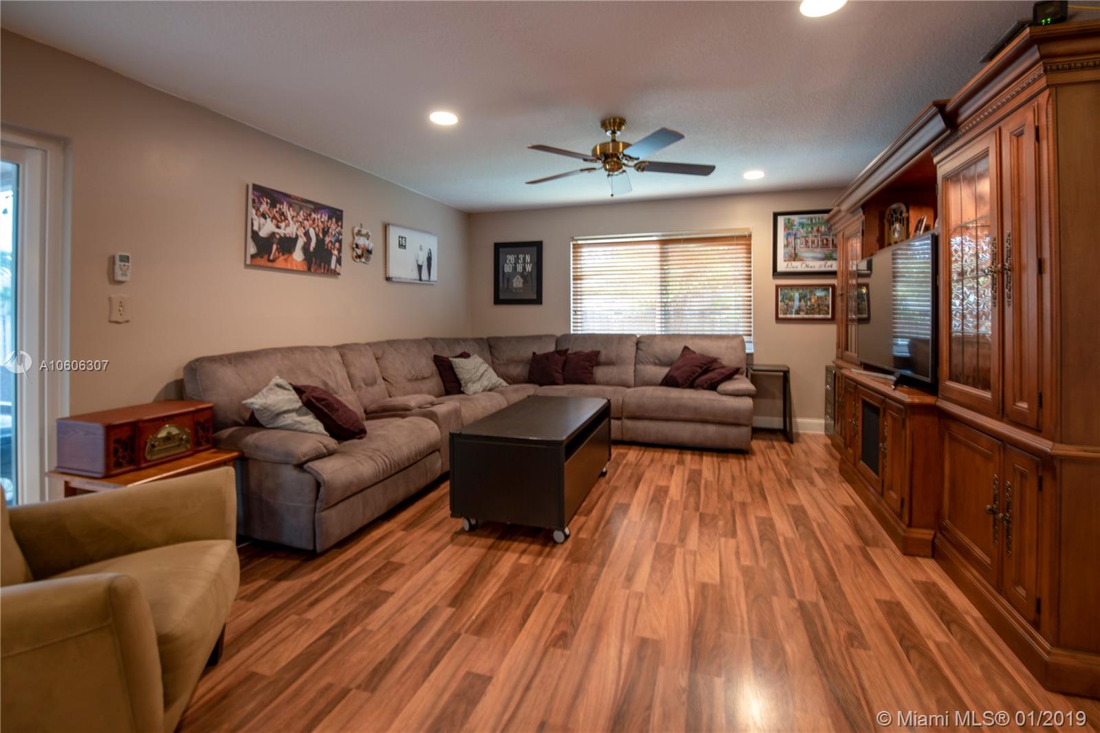 3/2 with a 2 car garage on a corner lot in desirable Flaming Gardens. This updated Flamingo model with Split bedroom floor plan and “Complete” impact windows, doors and garage door is move-in ready. New custom kitchen with stunning granite counters, wood cabinetry and pullouts in the pantry. Right off the kitchen is additional built ins with work area. The kitchen overlooks a large family room and has a pass thru window to the patio great for entertaining. Master bedroom has a walk in closet with built- ins. The master bath has dual vanities, an oversize shower complete with a spa shower head. The yard is fully fenced with double gates in the back. There is Circular drive for additional parking. No HOA ! Griffin Elementary School is on the same street within walking distance.