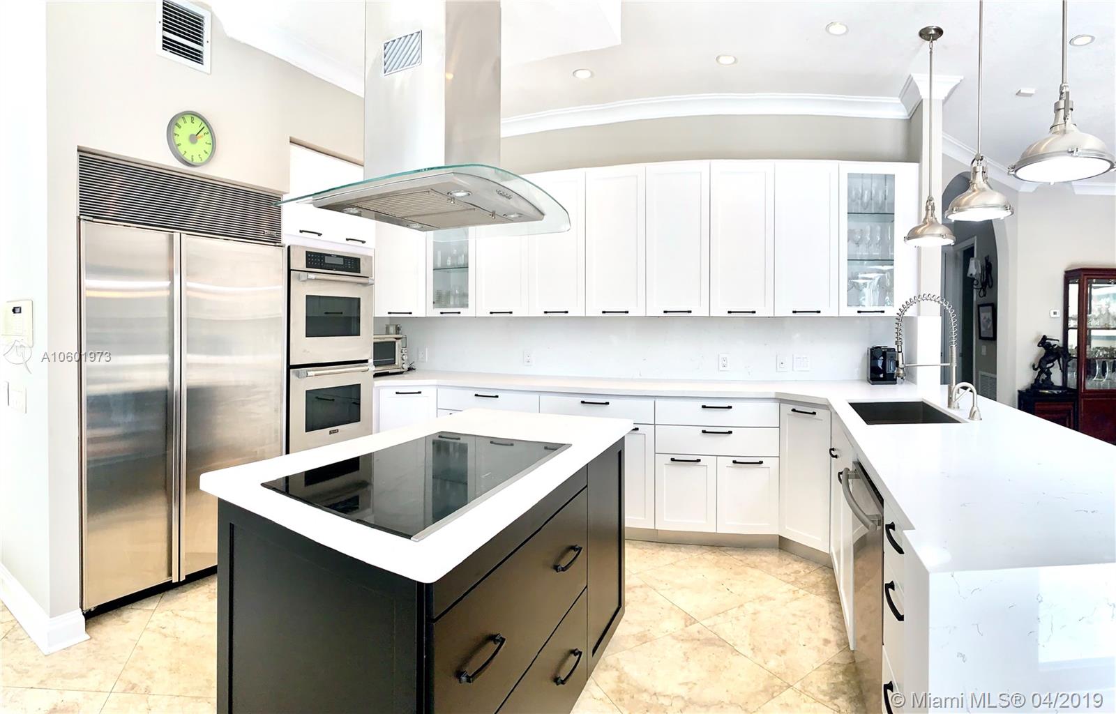 REDUCED TO SELL! New kitchen, new price! This stunning turnkey home is located directly on the serene Turnberry golf course in the exclusive prestigious gated Country Club Estates. This perfectly landscaped house welcomes you w/ a grand wooden staircase & soaring vaulted ceilings. Marble & Brazilian cherry hardwood floors line the house for a modern & warm finish. Step into freshly renovated kitchen w/ quartz countertops & a naturally lit breakfast nook overlooking pool & golf course. Kitchen is fully equipped w/ sub-zero fridge, Thermador double oven+heating drawer, & 5-burner Bosch stove. Continue through french doors which opens up the to the backyard w/ recently renovated pavers & pool. Other features include impact windows & doors, crown molding & custom built out closets throughout.